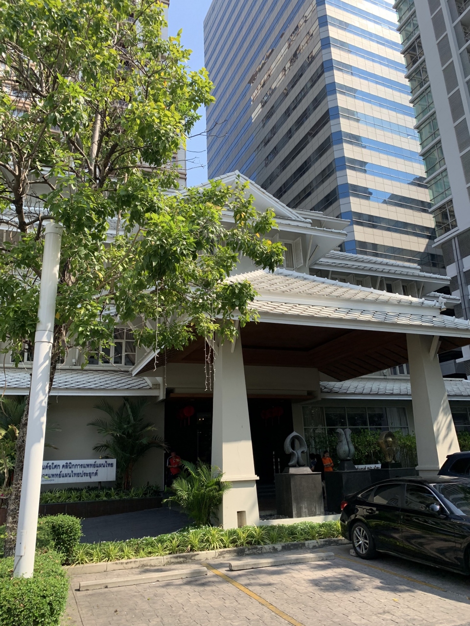 MRT「スクンビット駅」から北に200メートルほど進み、交差点を左折。150メートルほど進むと右手に白い大きな建物があります。通りに面した入口には看板も出ていますのですぐに分かると思います。
