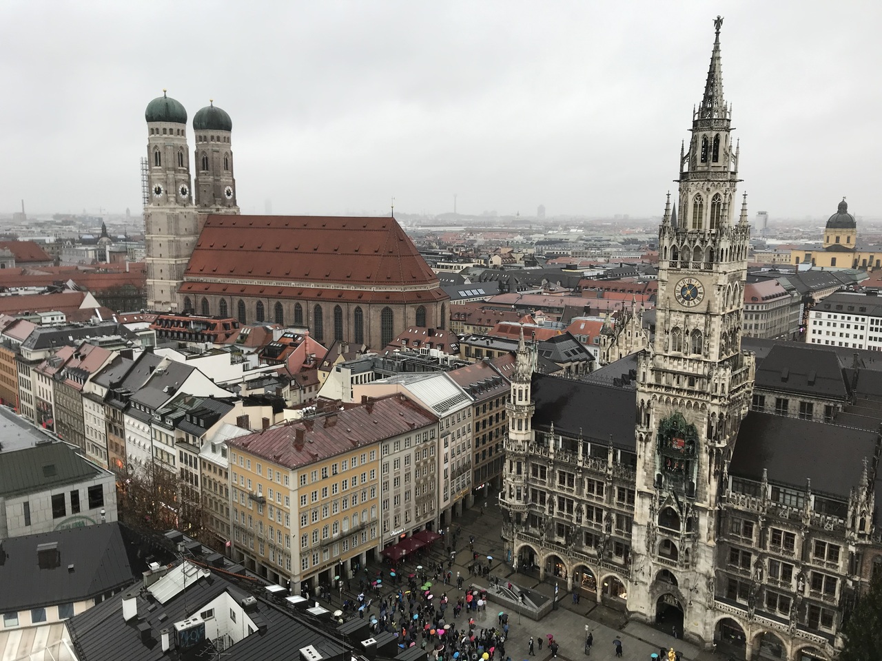 マリエン広場は美しい市庁舎にカラクリ時計、ペーター教会など観光スポットが集まっており、ミュンヘン訪問の際は必ず通るスポットだと思います。