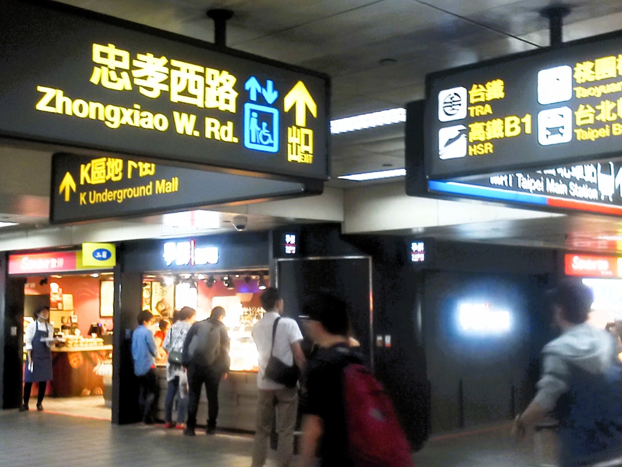 `地下鉄(MRT)`の魅了は市の名所/飯店の近くに行けるですね;今回もホテルを駅舎`台北駅;地下鉄`に用意して、台北101/北投温泉/永康街(MRT東門駅)//に☆ 夜間に駅舎<台北車站>が水色で輝くの選びました(参考で[台北駅]にも) MRT台北駅は入り組んだ迷路です、頼りになるのは駅の看板です、エスカレータ/エレベーターも利用していますね♪