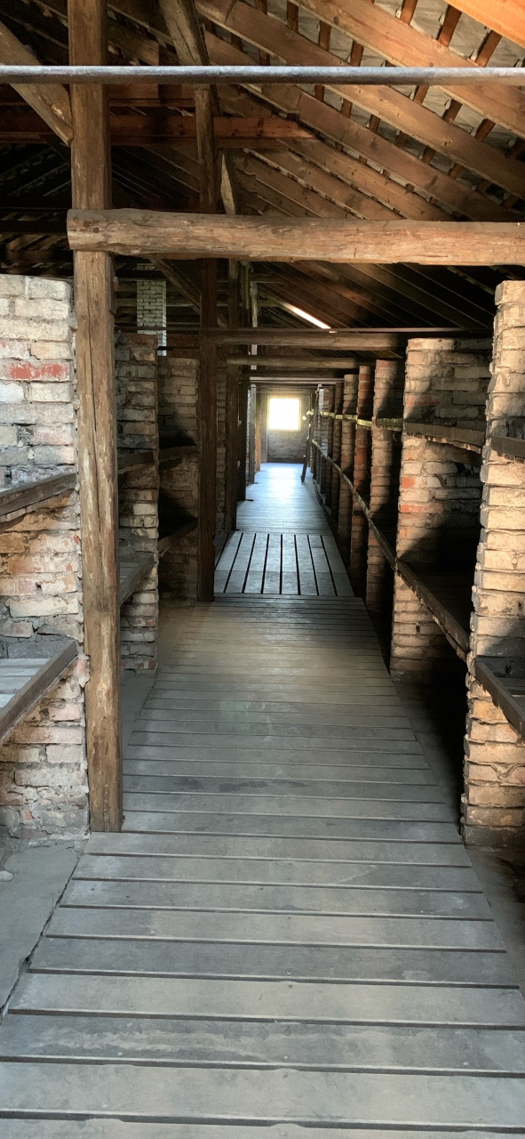 第一収容所を見学後、10分毎に出る無料シャトルバスで第二へ移動しました。入場口となっている建物から鉄道の引き込み線が広大な敷地内へ一直線に伸びる光景は忘れられないものになりました。個人ツアーは16時スタートが一番早い枠なので、クラクフへ戻る最終バス19:15を考えると第二を先に見学してから第一に入るのが時間に余裕があってよいと思います。