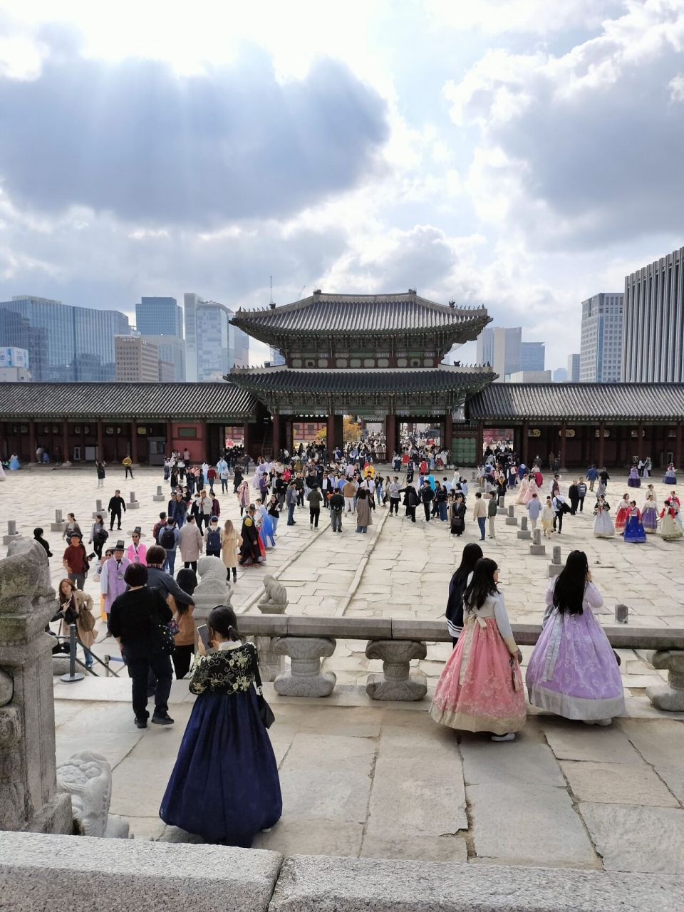 韓服を着ていくと入場料が無料になるので伝統衣装を着た人たちであふれています。
