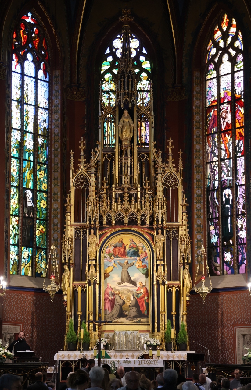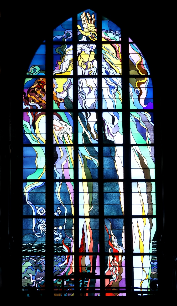 ステンドグラスはかつて見たこともないような独創的で斬新な絵柄で、ポーランド人画家スタニスワフ・ヴィスピアンスキー(1869-1907)による制作だそうです。