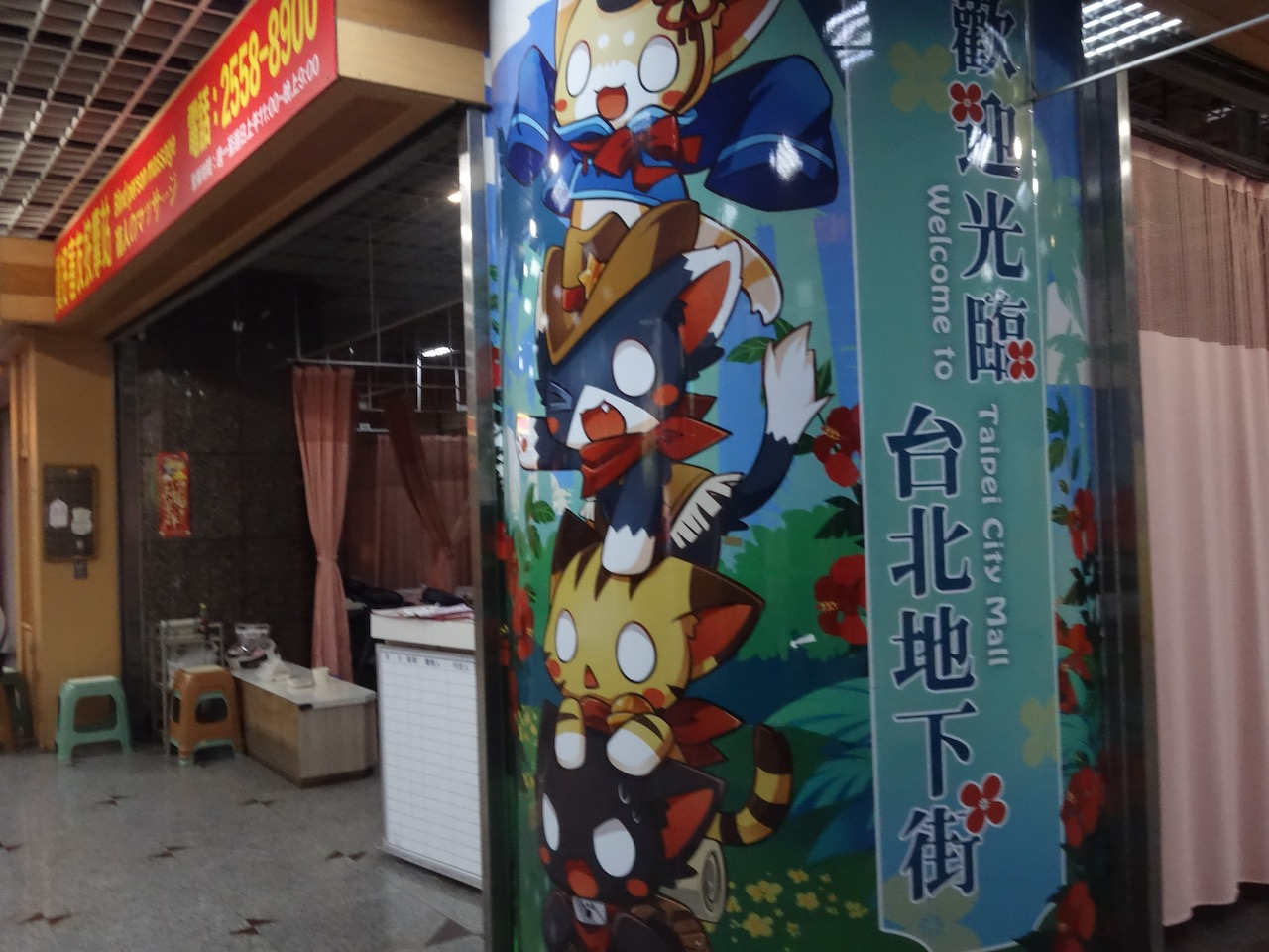 どちらかというと地元向けの商店が並んでいる気がしました。そしてアニメのキャラクターの絵がいっぱい。これが商店街のマスコットなのかもしれません。其の点、4つの地下街の中では一番したしみやすく感じました。