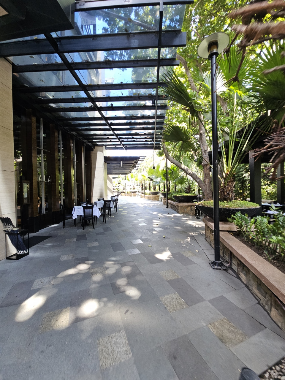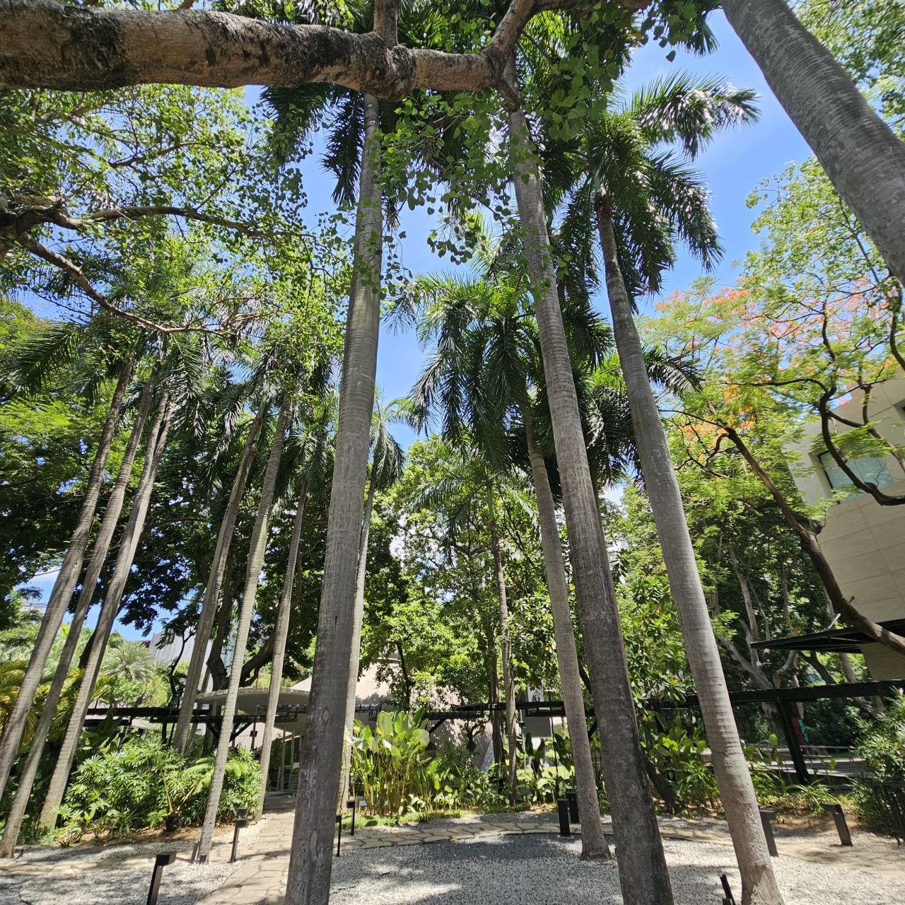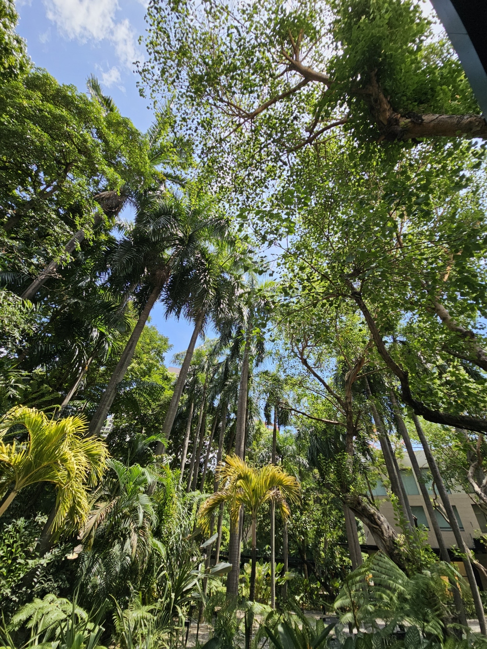 中央に南国ならではの大きな樹々が立ち並ぶ緑地帯があり、まるで熱帯植物園の中にいるような気分になれました。