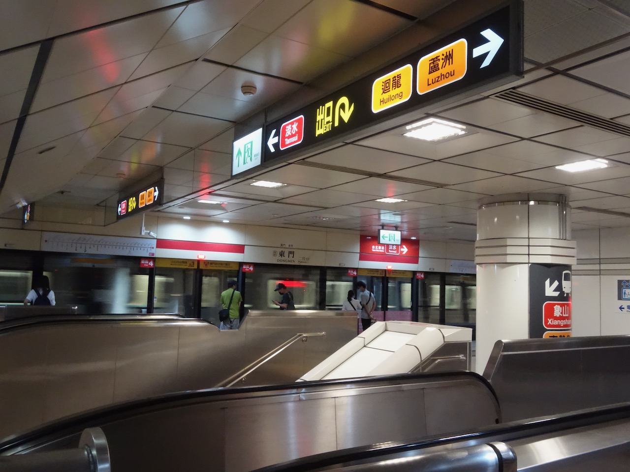 あと、赤いラインの淡水信義線のホームドアはほとんど低いタイプのホームドアなのですがこの駅は中和新蘆線に合わせてフルスクリーンタイプです。電車の写真を撮る場合は別の駅にしましょう。