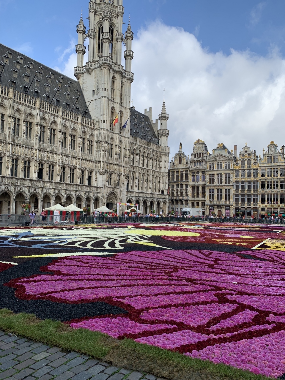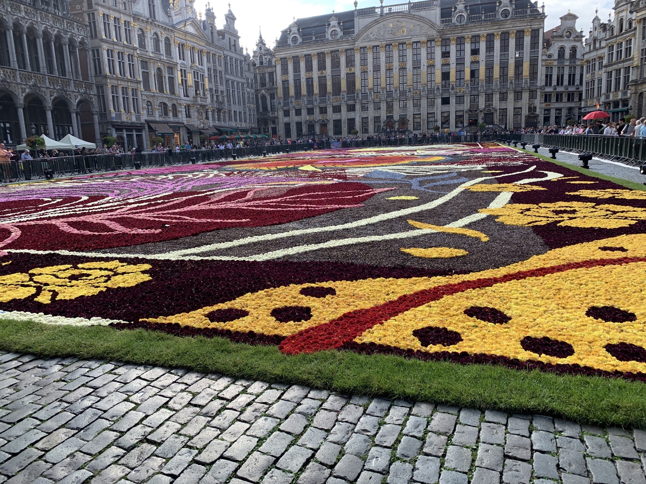 たまたまフラワーカーペットの開催日にブリュッセルに滞在しました。土曜の朝と夜に、フラワーカーペットを見に行きました。朝はまだ人も少なめで、ゆっくり見ることがでしました。周りの豪華な建物とマッチして、ホントに美しい光景でした。夜は人があまりにも多くて、ライトアップされた建物はすごく綺麗で感動しましたが、フラワーカーペットまでたどり着く前に気力がなくなってしまいました。