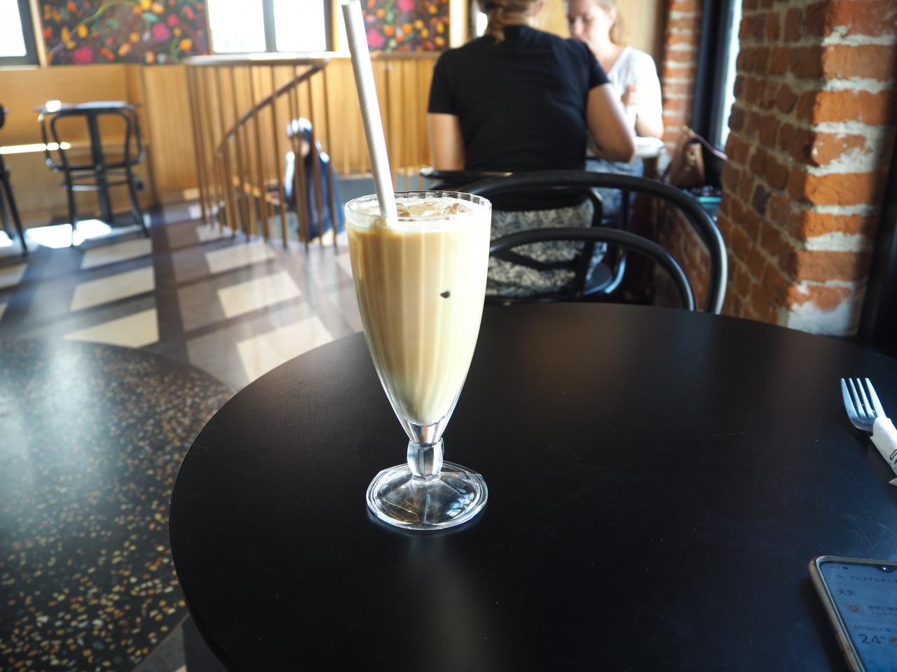 ブリュッセルワッフルとアイスコーヒー(日本と同じ)を注文。