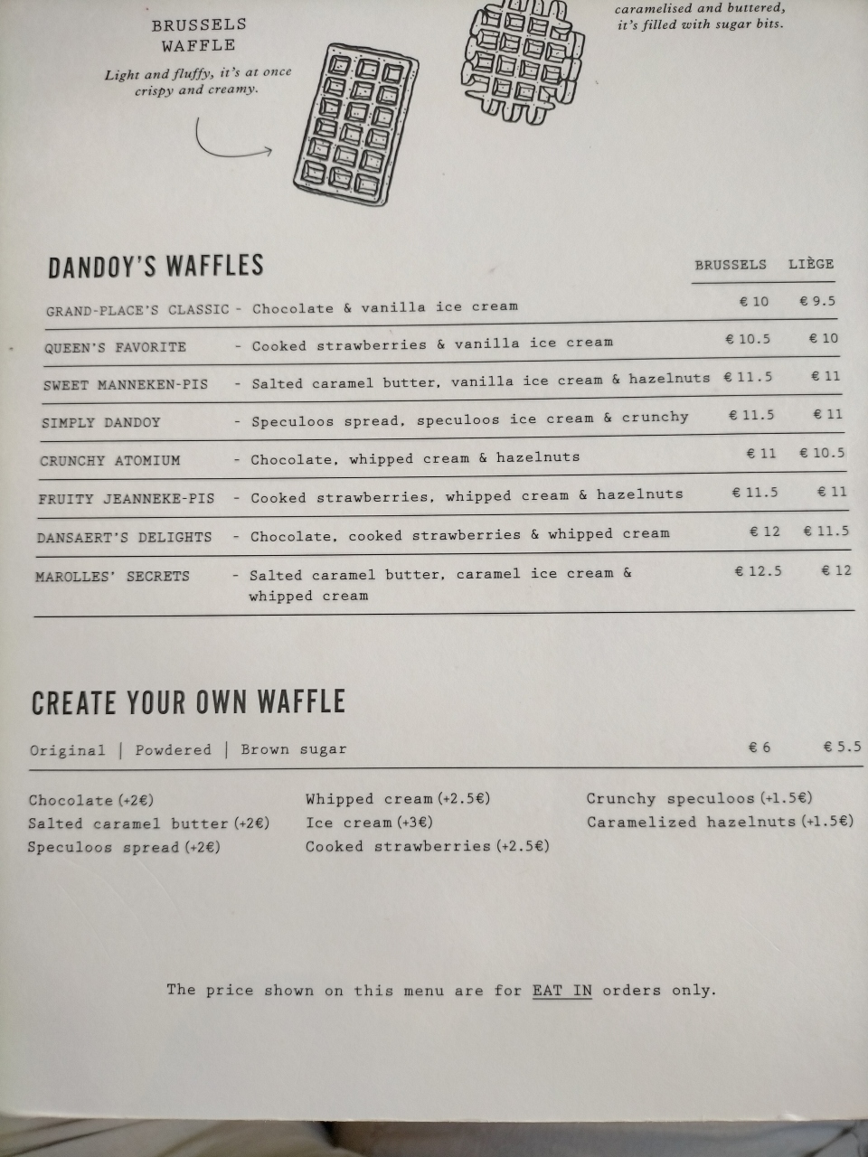 ワッフルのトッピングはメニューから自分で選ぶこともできます。注文対応や店内の雰囲気がなんだか日本に近いものを感じ安心でリラックスできました。