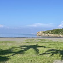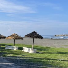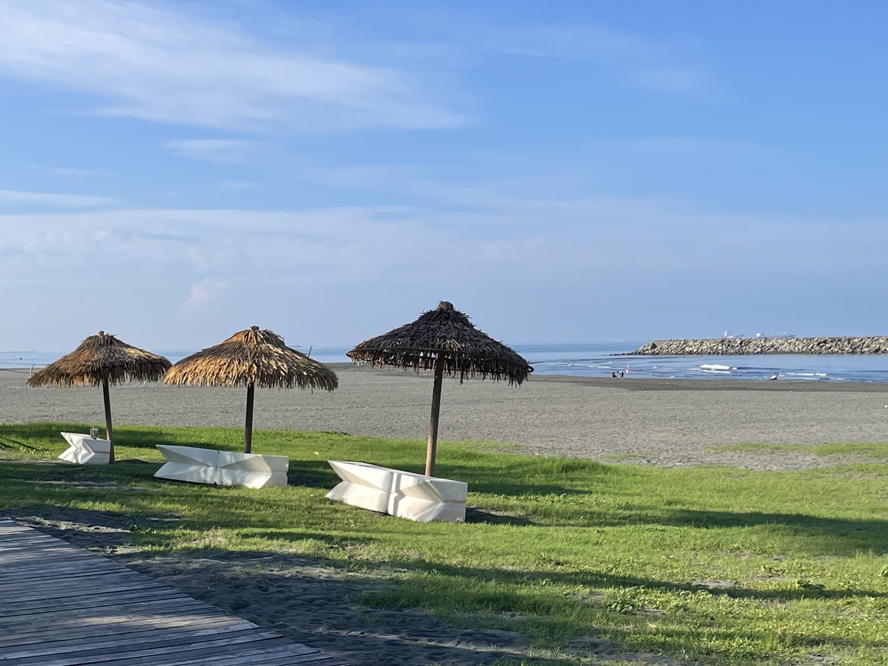 高雄港と反対側は砂浜が長く続き公園として整備がされています。ビーチの水もきれいでしたが、人はほとんどおらず。波が多少高かったかもしれません。あまり混雑することのない静かなビーチなのか?灼熱の太陽が降り注いでいました。