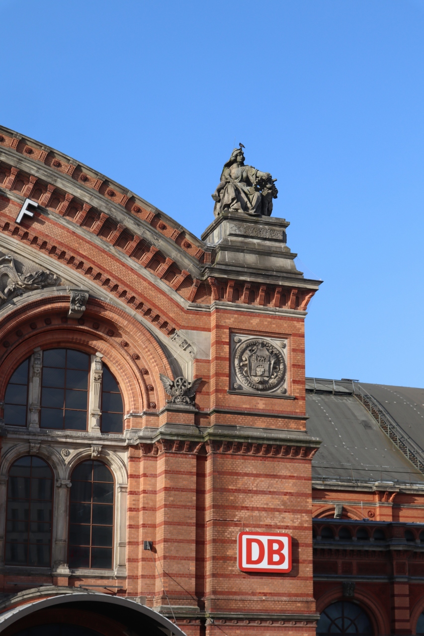外壁はケルン・ハノーバー・ハンブルク・ブレーメンにつながる3つの都市、そしてブレーメン自体のエンブレムがあります(DBのページ情報)