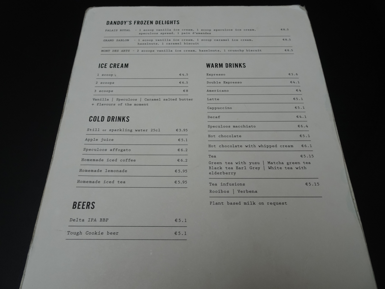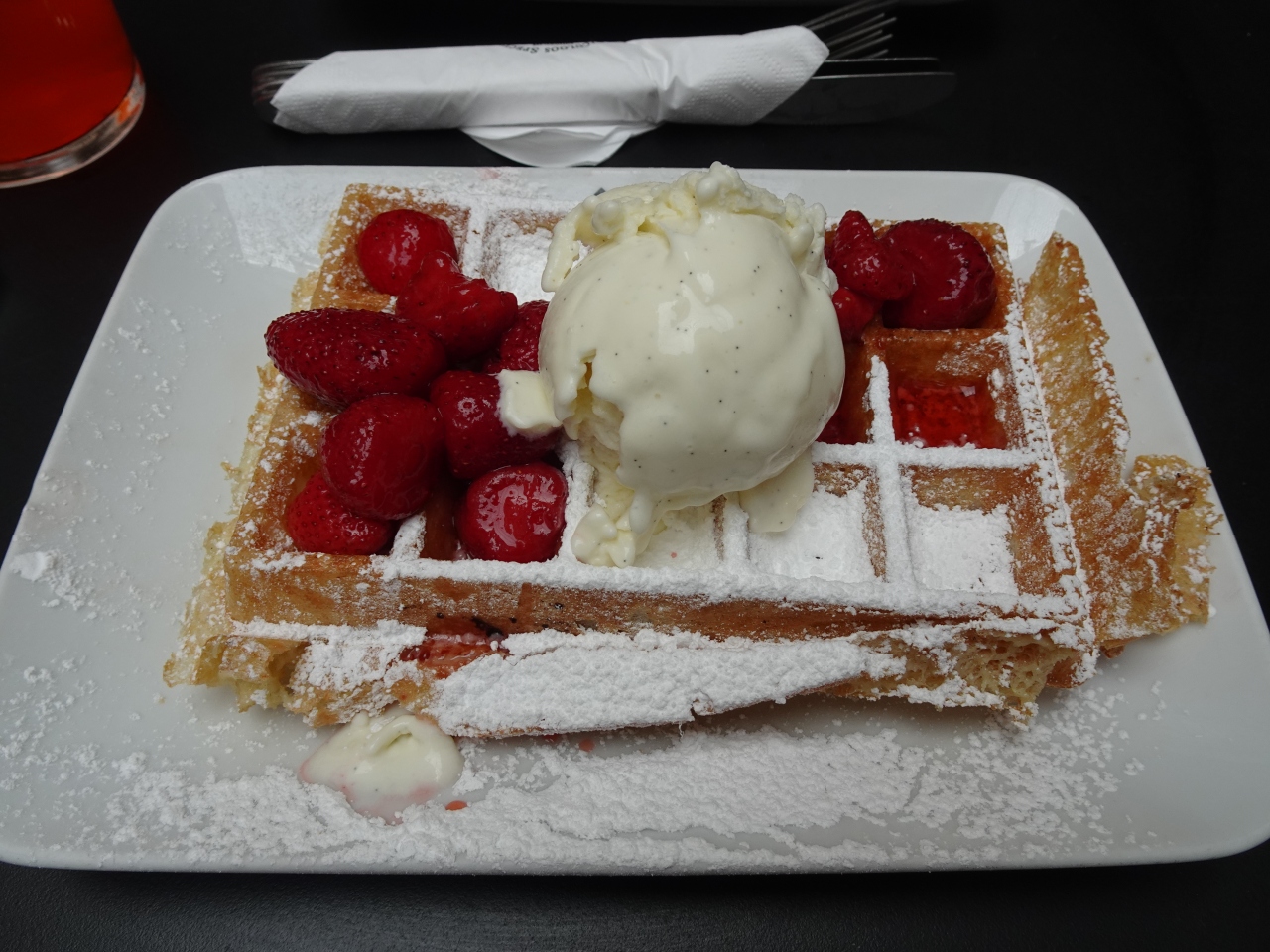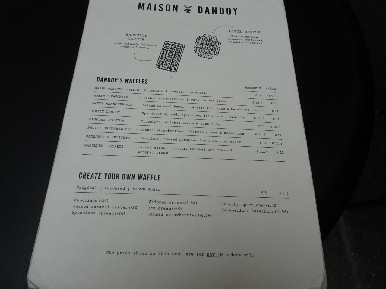 ギャルリ・サンチュベール店のメゾン・ダンドワへ行ってきました。ちなみに、もう一店舗は小便小僧の近くにあります。お店でいただきたく伺いましたが、入店待ちの列ができていました。いついっても待ち時間は発生していたように思います。数分待って、テラス席へ。ブリュッセルワッフルとリエージュワッフルをオーダー。ブリュッセルワッフルはサクサクで甘酸っぱいイチゴソースとバニラアイスの組み合わせが最高!。リエージュワッフルは、もちもち感があり、チョコレートソースとバニラアイスでしっかり食べたーっという気になれます(笑)。店内では、クッキーなどが販売されており、お土産にチェックしてみるのも楽しいですよ!。