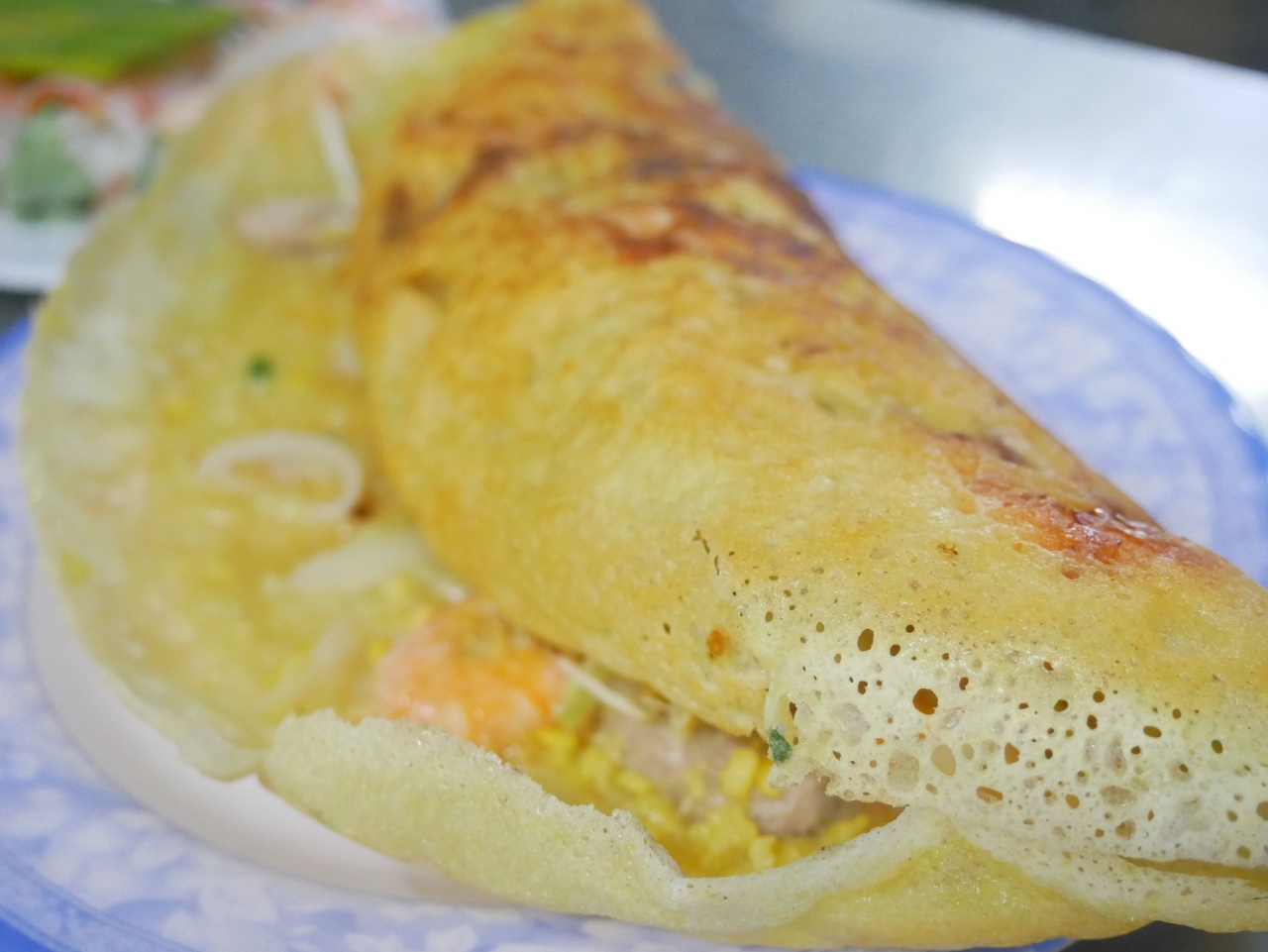 バインセオはベトナム風お好み焼きという触れ込みだったのですが、サクサク感が強くお好み焼きのふわっとした生地を思い描くと実物はちょっと異なるようでした。