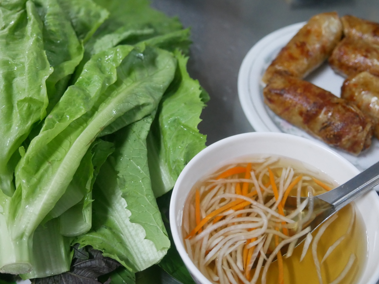 再度メニューで揚げ春巻きなどもあるのですが、外国人向けのメニューにはミニマムオーダーで5本頼むこと…と書いてあり、1本単位では注文できなそうなので注意です。ただ、地元の方は少ない本数で注文されているようだったので、オーダーできなくはないかも…とは思いました。揚げ春巻きも美味しかったですよ。こちらも生野菜に巻いていただきました。