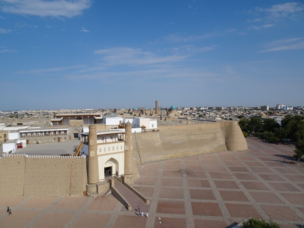歴史的建造物で埋め尽くされているブハラ旧市街には珍しく、鉄骨むき出し(そしてちょっとボロい)のワイルドな姿をしたタワー。ソ連統治下の時代に取水等として建てられたものらしいのですが、旧市街の中ではよくも悪くもひときわ浮いています。でも、古いモスクやメドレスを見すぎて食傷気味になっていたせいかつい目が行って立ち入ってしまい、つい展望台にも登ってしまいました。展望台への入場料は確か50,000スム(600円弱)だったと思います。