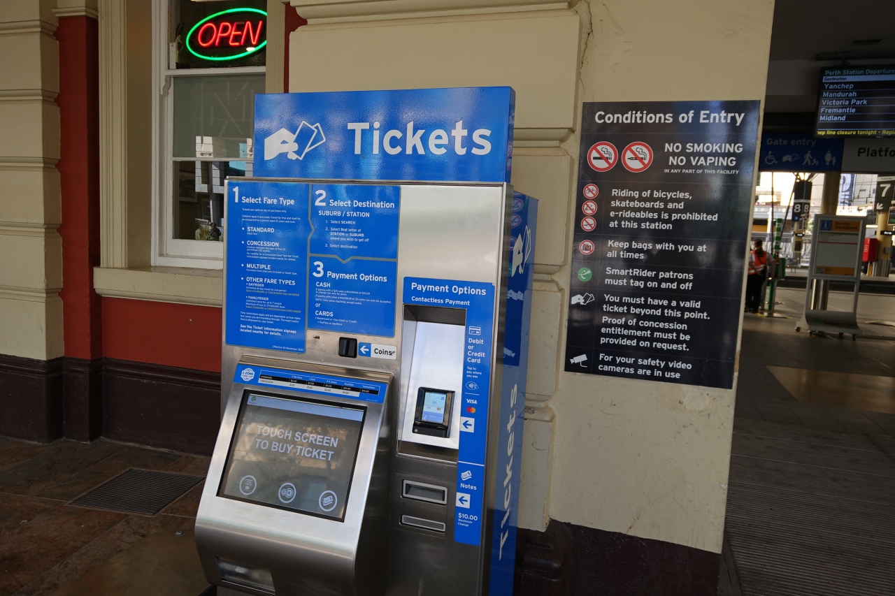 パース1週間滞在中ずっとトランスパースで移動しました。SmartRiderという交通系ICカードにチャージしておけば1回ずつチケットを購入する必要がなく、料金も現金よりお得になります。なにより日曜日の料金はかかりません。日程で日曜日が入っているなら断然お得です。