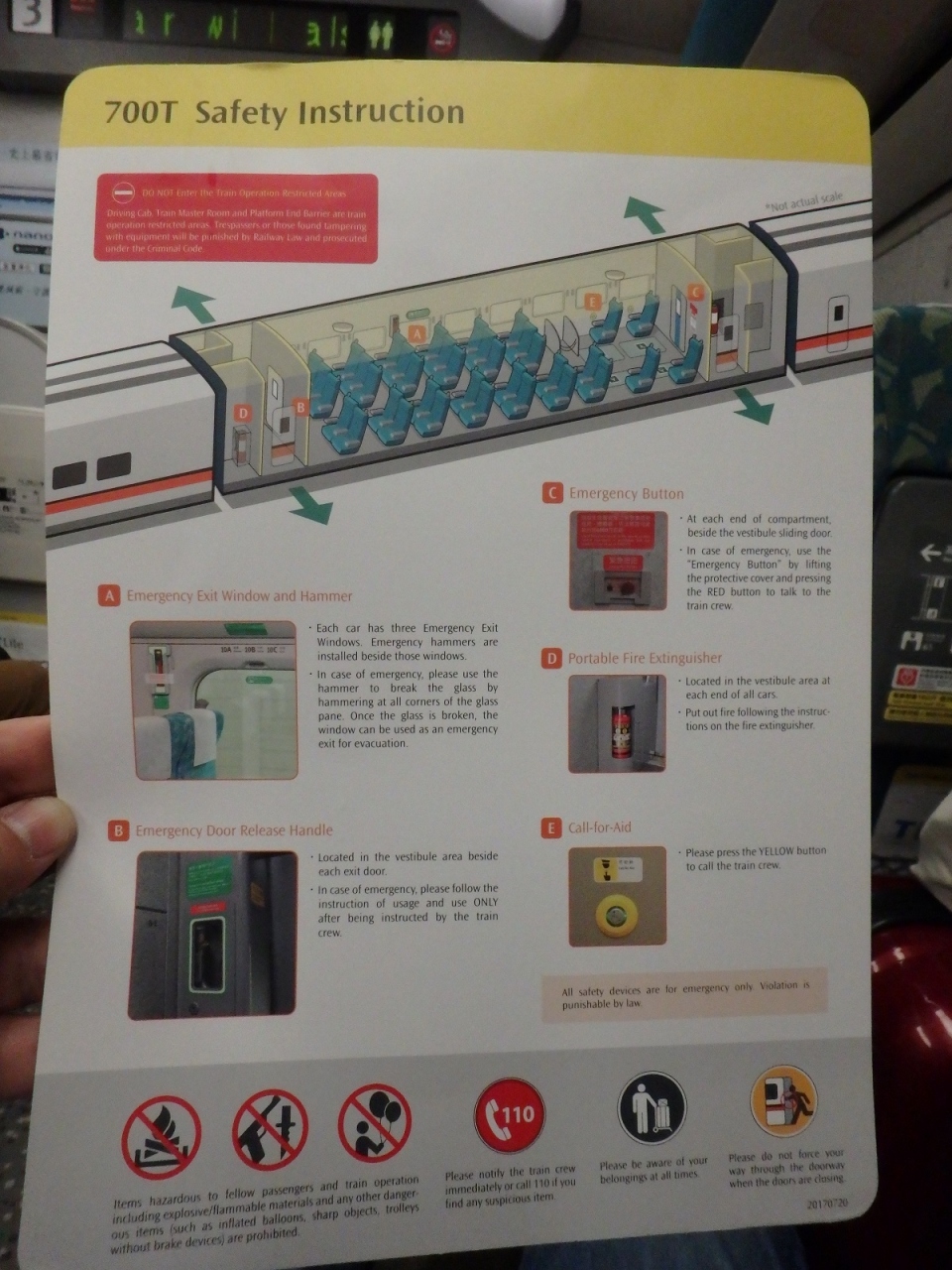 今回は桃園から台湾への移動だった為、地上区間を走る距離が僅かだったので車窓は楽しめなかったが、体験乗車としては桃園~台北はオススメなのかもしれない。