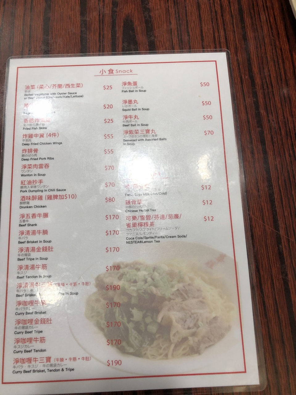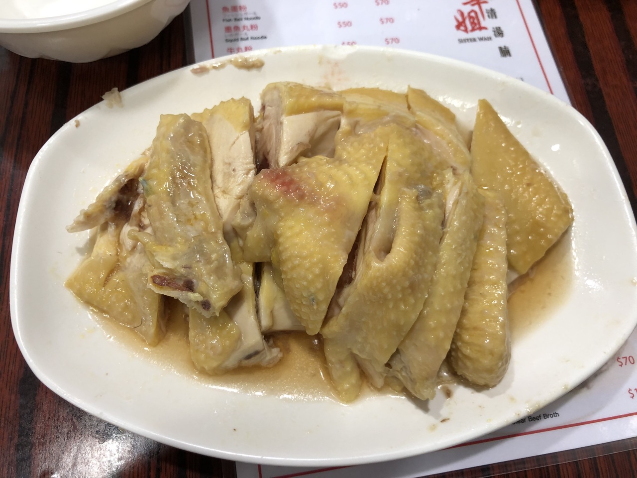 実は訪問前日に牛バラスープを別の店で頂いたのでメニューを眺めつつドランキンチキン(HKD80)とヌードルスープ(HKD20、何の具も入ってないシンプルなスープ麺、ご飯の代わりに~)をオーダー。