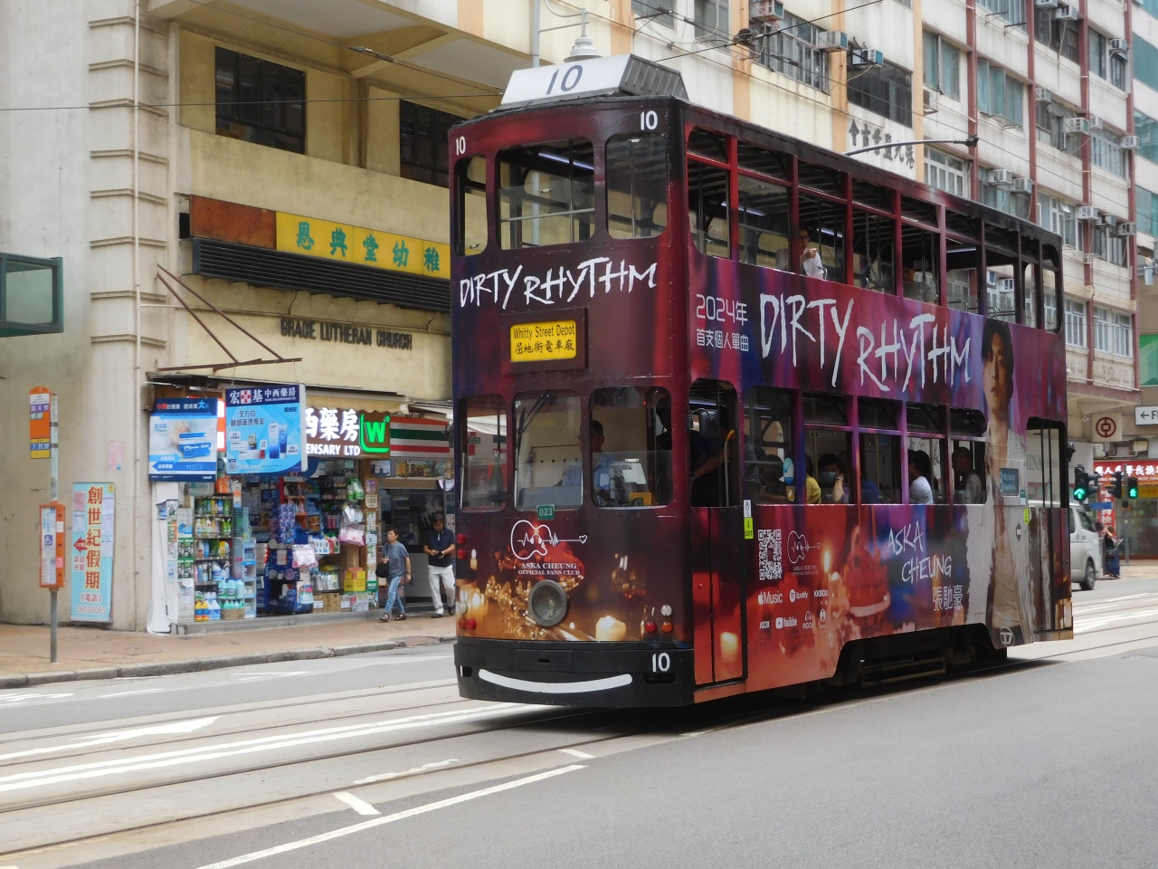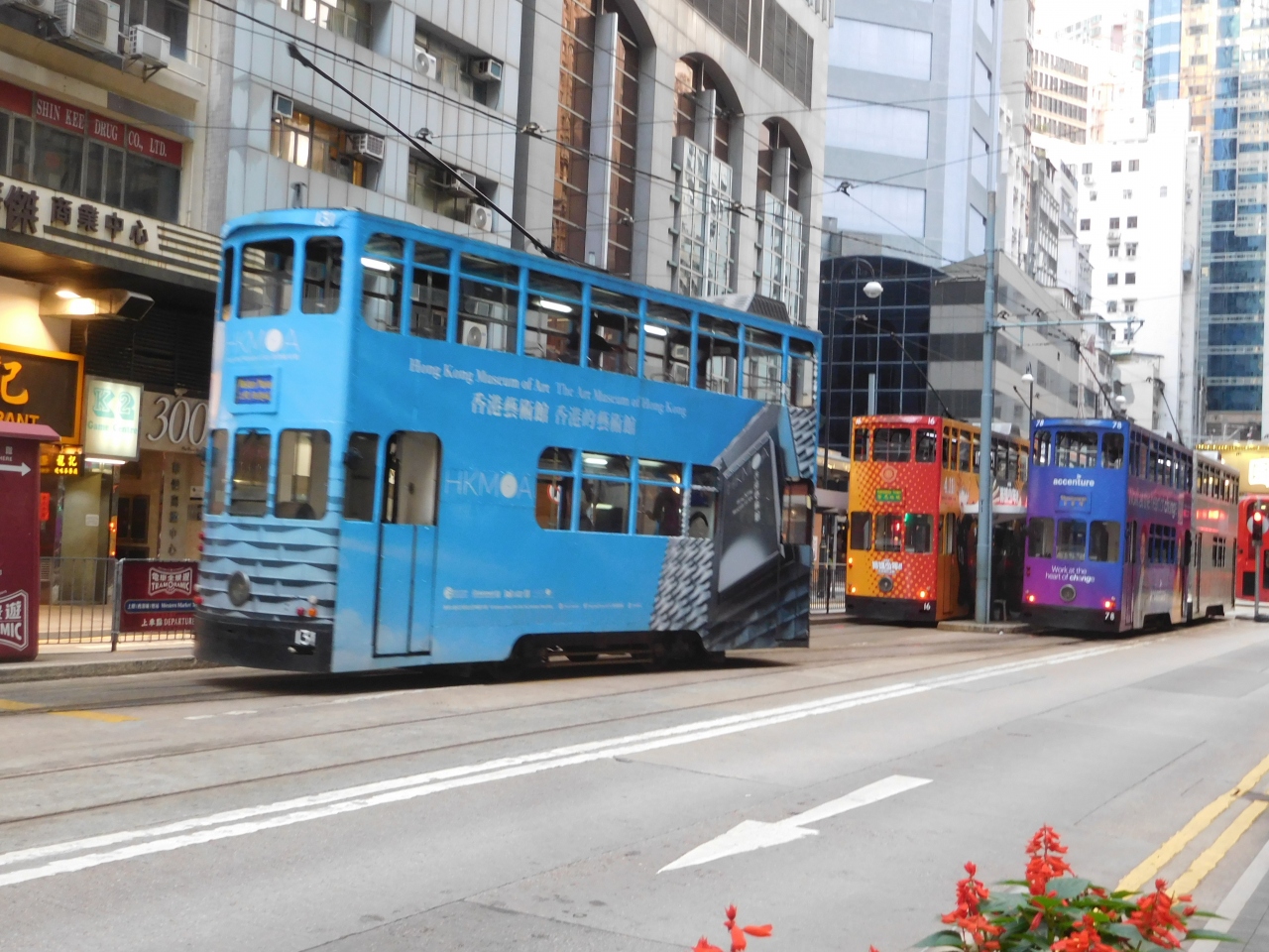 香港島の北部をのんびりと走る、2階建ての路面電車です。道路の中央分離帯にトラムの停留所があり、次から次へと、いろいろなデザインのトラムが続いて来ました。後方から乗車し、のんびりと香港の街並みを眺めながら移動する事が出来ます。地元の人が多く利用していました。