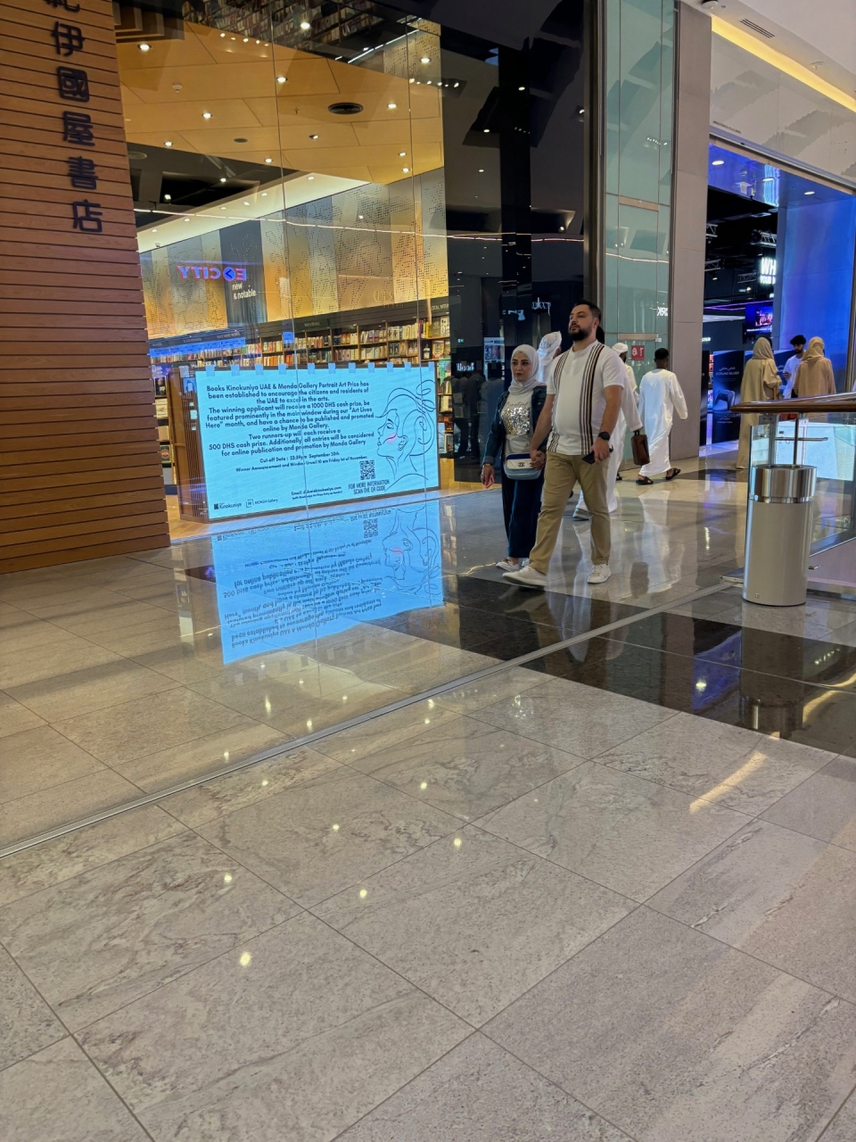メトロでドバイモールを訪れました。メトロを降りた後、モールまでは動く歩道や普通の道を10分くらいは歩きます。屋内ですが見る者もなく退屈ですが出口を出てモールに入ってすぐ、「紀伊国屋」とあり驚くことになります。店内では本以外も日本で販売されているような品物も販売されています。