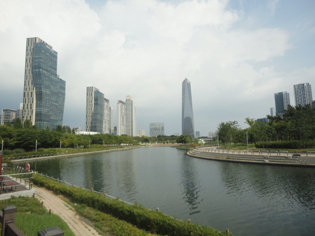 高層のオフィスビルが並ぶ仁川の新市街にある広い公園です。大きな池があり、涼しげな風景でしたが、真夏に訪れたら、あまりに暑くて散歩する気持ちはなくなってしまいました。暑すぎるためか、平日の午後だからか、公園内を散策している人は全く見かけなかったです。