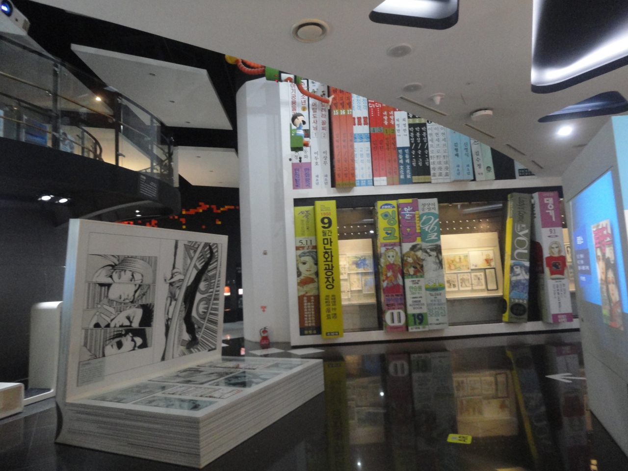 仁川地下鉄の三山体育館駅から行きました。広い公園の一角にあり、駅の出口の目の前で迷いませんでした。広い館内は有料の展示エリアの他に、無料で利用できる図書館などもありました。韓国の漫画の歴史を紹介する展示がありましたが、古い漫画は日本の漫画にそっくりで驚きました。当時は日本の漫画は韓国に輸入されていなかったはずですが、絵柄はどこかで見たようなものばかりで、本当の韓国の漫画?と不思議に思うほどでした。