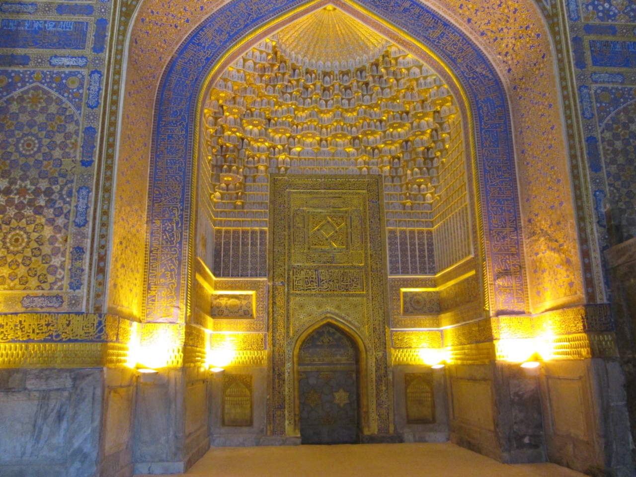 レギスタン広場の真ん中のメドレセで入ると黄金に輝く礼拝所があります。