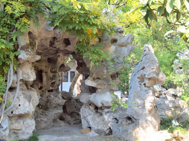 中国庭園らしく石の迷路や池があります。