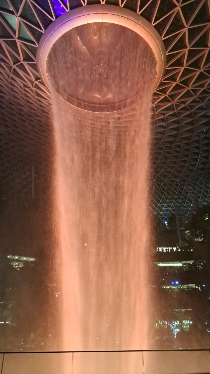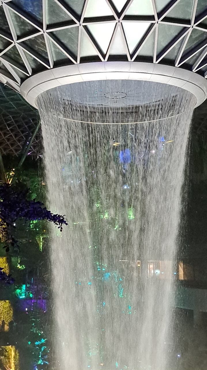 目玉となるのが。世界最長の室内滝「レイン・ボーテックス」。写真で見るのとは迫力が全然違う。