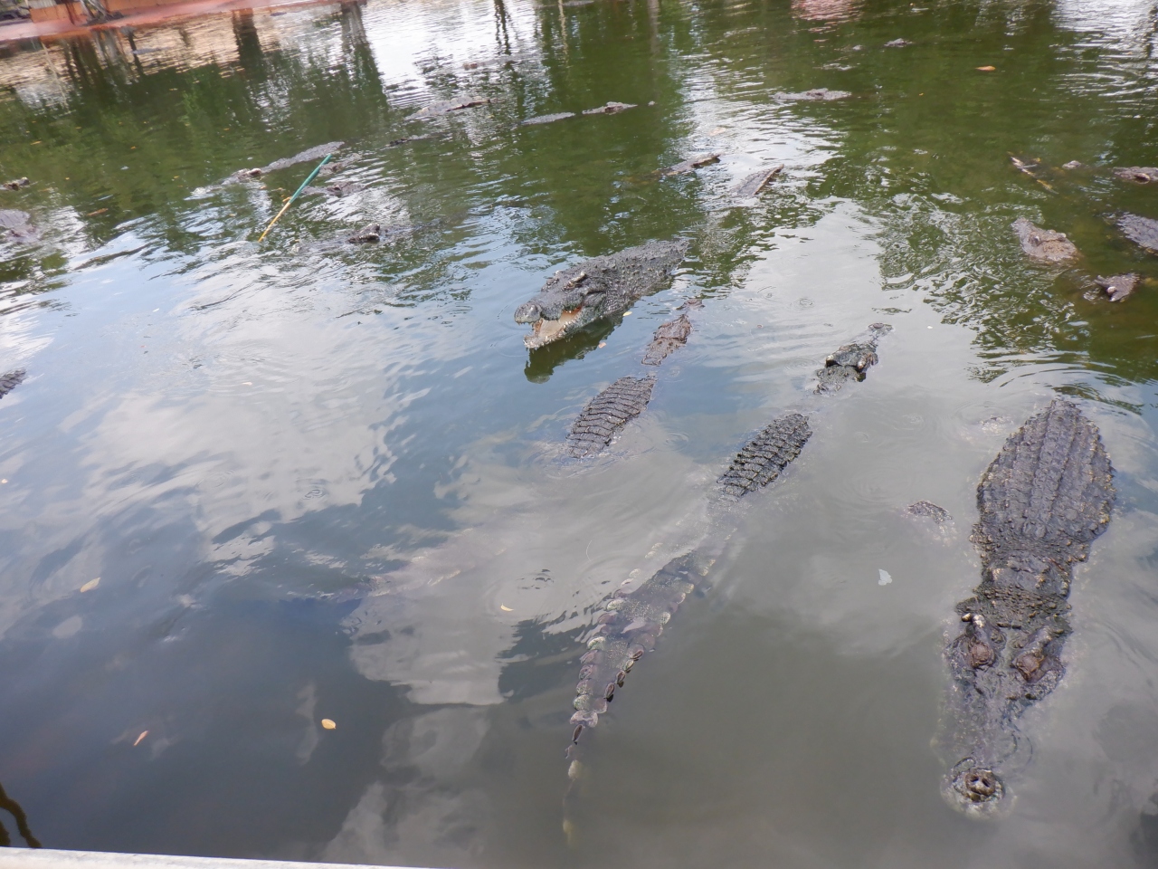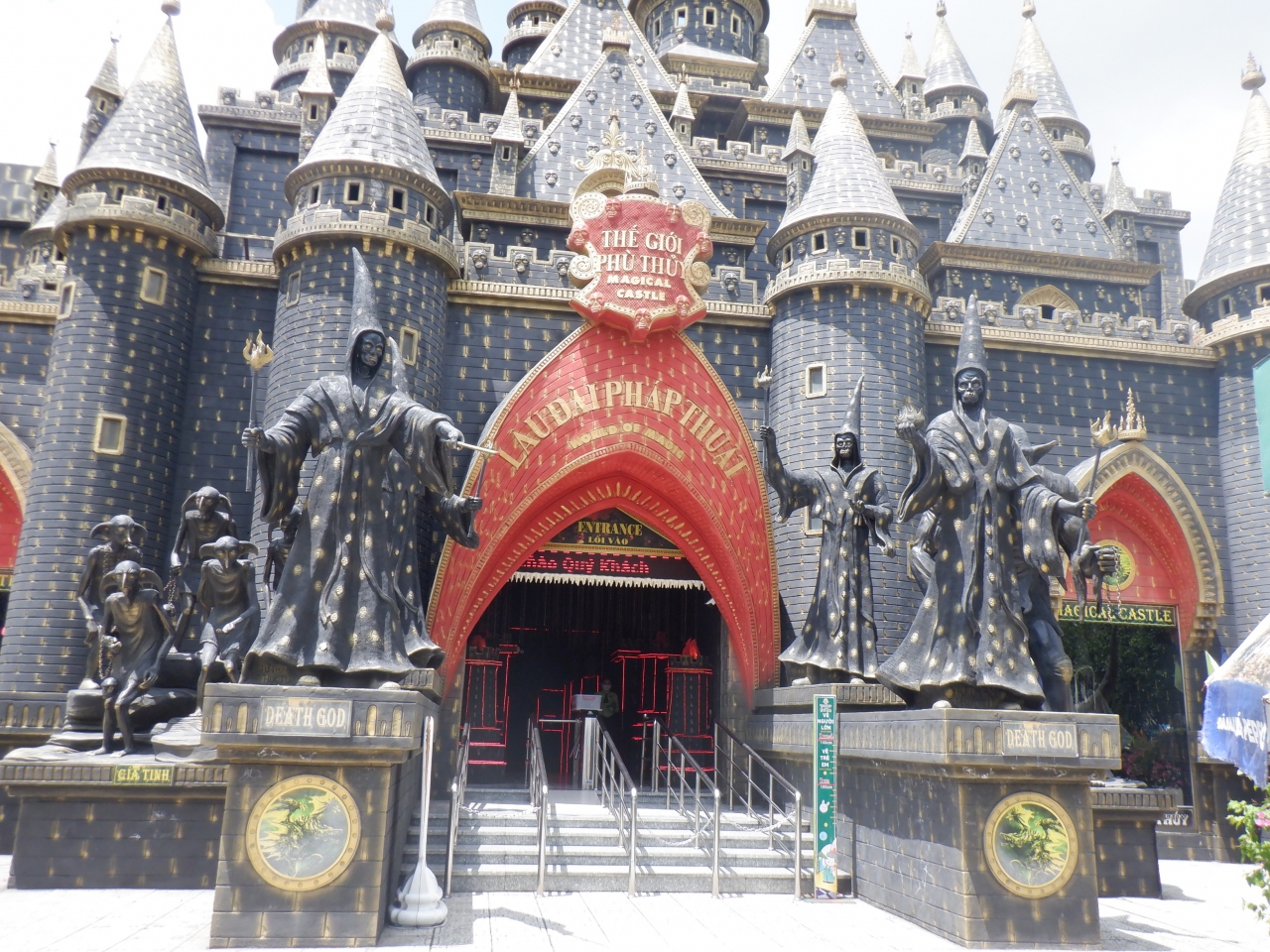 園内トローリーで一番奥の方まで行って帰りは見学しながら、徒歩で帰ってきたんですが、まず植物園というか果樹園~ちょこっと見学だけ。次にワニ釣り~これは結構面白い体験かも、大きなワニと力比べ気分が味わえます。あと本当の釣り堀もあり。次は小動物園~いちおう見学しながら通過。次は、子供用のプチ遊園地~誘われたので、射撃してみました。そして、次は、メインの各アトラクション。ハリポタのお城ふうのお化け屋敷・各種仏教風の施設。ミニボートに乗って探検する風なやつ等等、小さな水族館や室内雪山そり滑り場までありました(すべて有料ですが)。どれも、これも、けっこうしょぼいんですが、しょぼさを味わうとけっこう面白い。