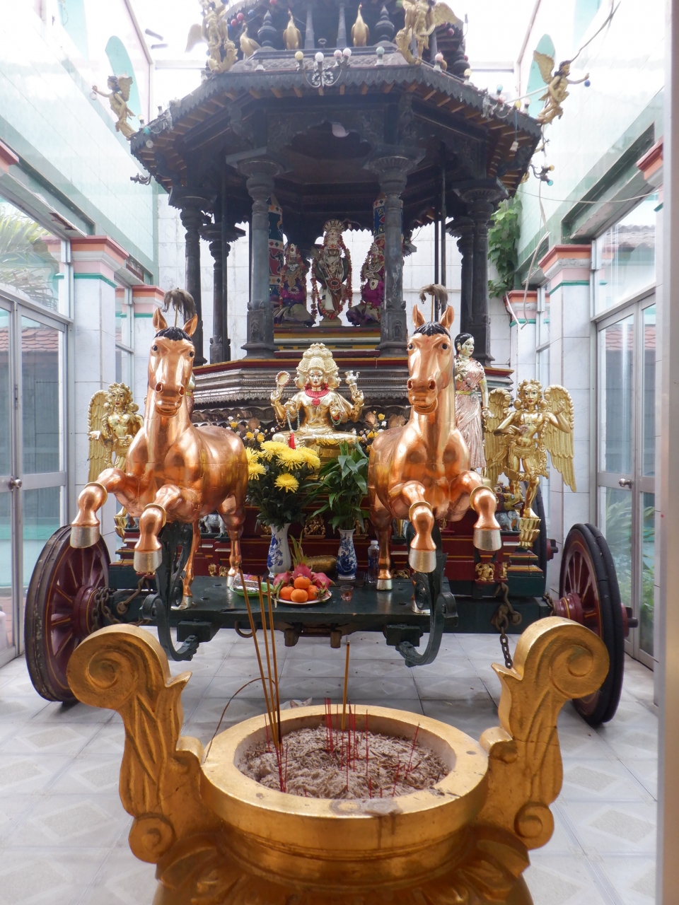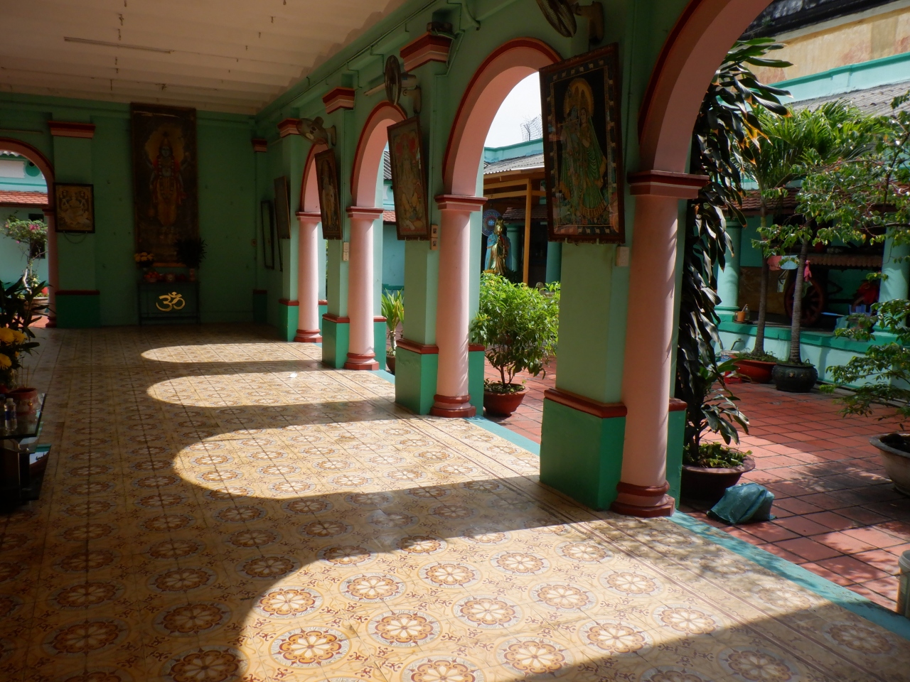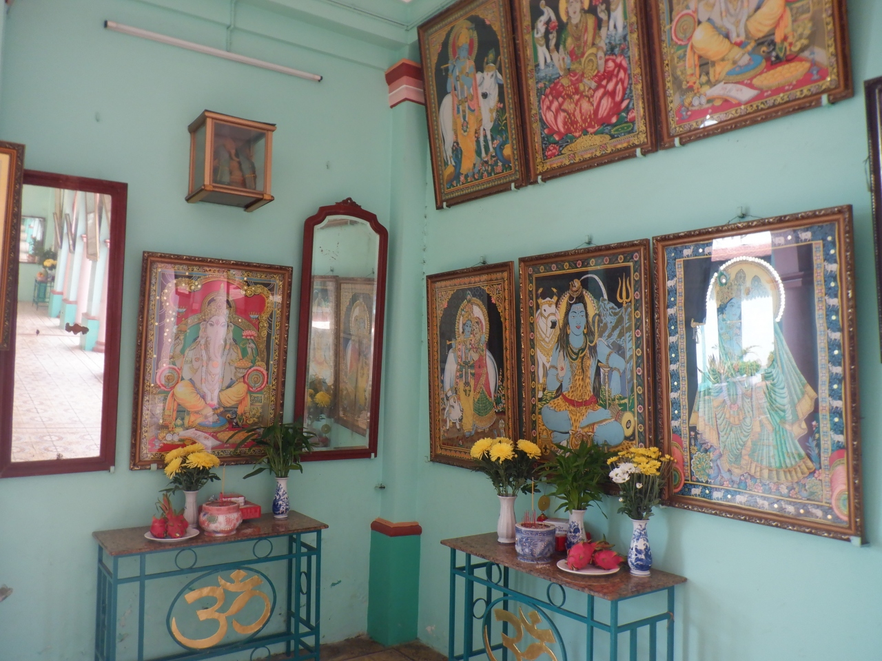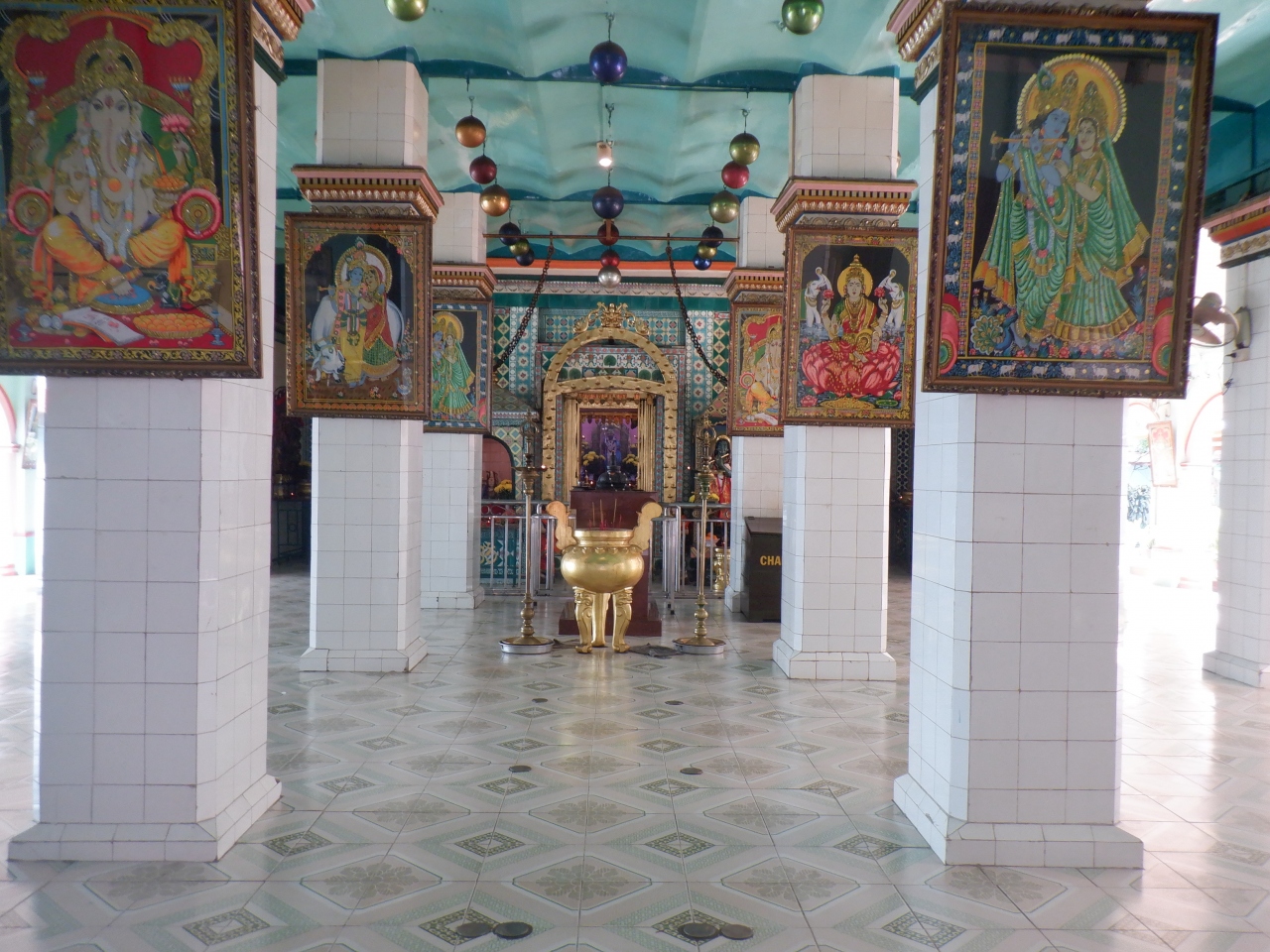 入ってすぐ、靴を脱いで、見学させてもらいますが、うす緑色を基調とした壁の色、そしてヒンドゥー教独特の神様たち、ちょっとイスラム教っぽさも感じる柱。どれもいい感じを出しています。