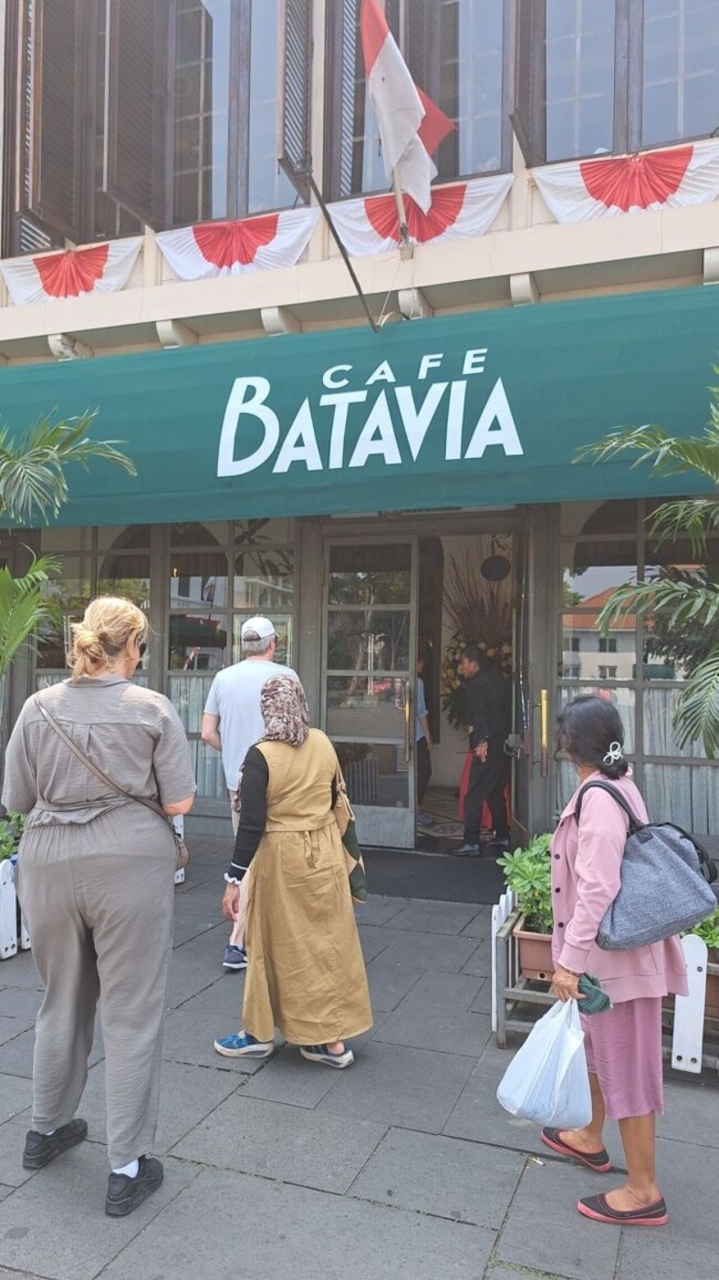 ジャカルタ北部のジャカルタ・コタ駅の北側のファラビラ広場の北に位置する「カフェ・バタヴィア」。歴史あるコロニアル様式の建物で、外内装ともアンティークな雰囲気のカフェです。