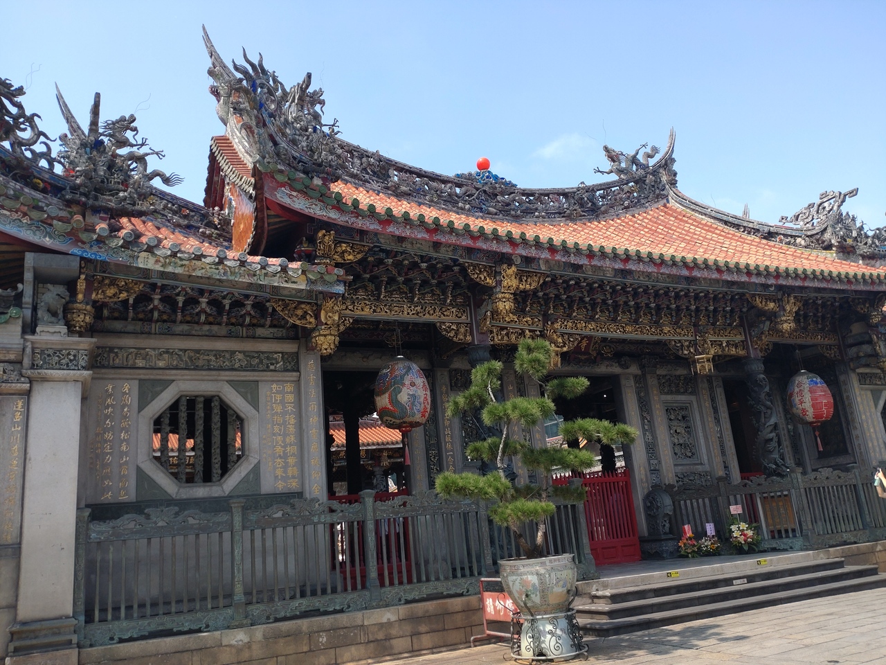 龍山寺は前殿・本殿・後殿で構成されています。門を入ってすぐ見えてくる立派な建物が前殿となりますが本殿よりは小さめです。前殿には三法仏が鎮座しています。地元の方・観光客とたくさんの参拝する人がいました。