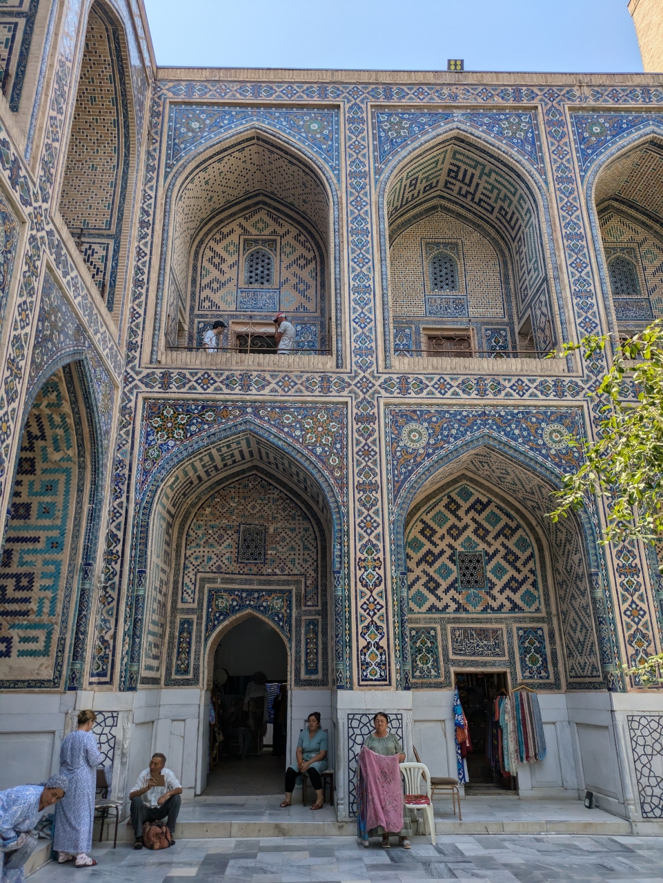 ヒヴァのミナレットよりは10mほど低く、かつヒヴァとは違い手すり代わりののロープが片側の壁に貼られているため若干昇りやすいですが、てっぺんが狭い(人が1人2人入って上半身だけを外に出すのがやっと)ので上部で他のお客さんとかち合うと結構大変なことになります。でも景色はちょうどレギスタン広場を見下ろすことになるため物凄い絶景でした。80,000スムでも結構な出費ですが、特段後悔はしていません!