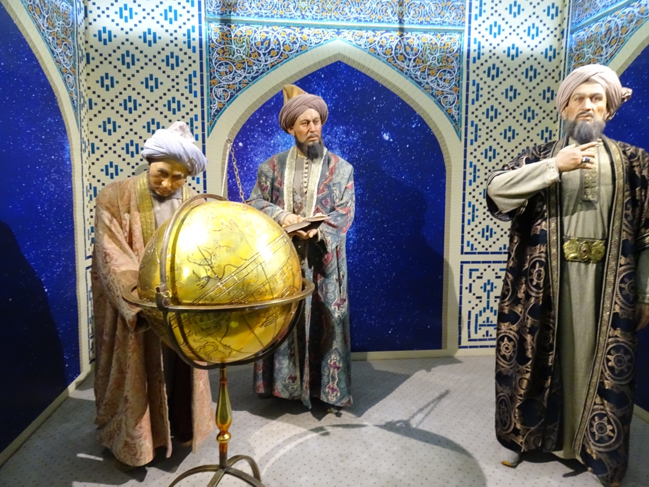 レギスタン広場は3つの主要な建物に取り囲まれるようにして造られていますが、そのうちの左手側にあたる建物です。半分くらいが博物館展示、残り半分くらいが土産物屋として運営されています。当時のメドレセ(神学校)ではどのようなことがどのように学ばれていたのかなどを開設しつつ、建物の名前にもなっている天文学者・ウルグベクの功績を伝え讃える役割も担っているようです。