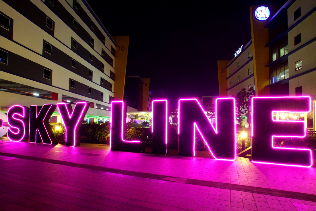 空港から車で約20分、周囲には大手ホテルやカンファレンスホールがひしめいていて