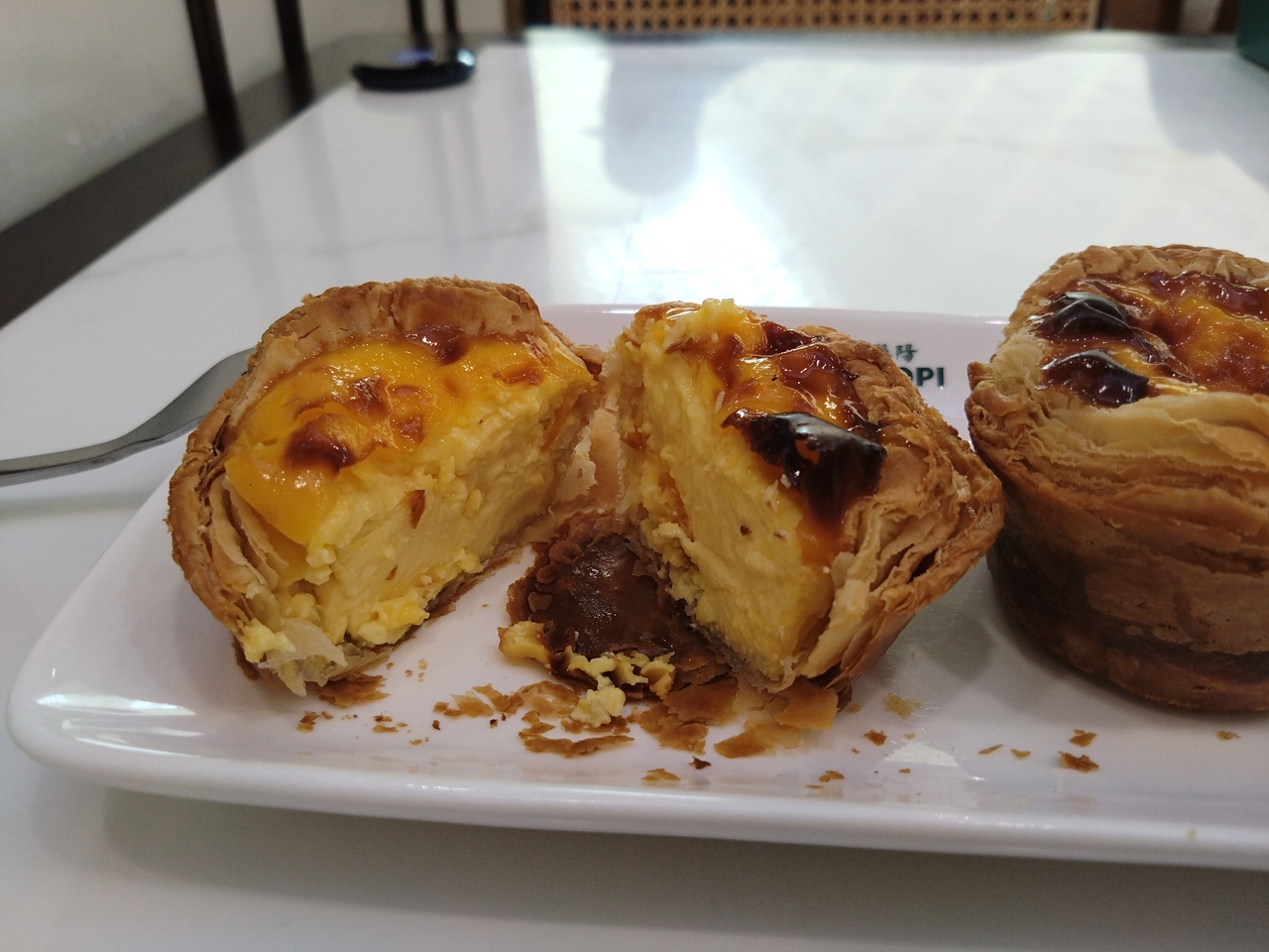 エッグタルトとテタレを注文。エッグタルトは皮がパイ生地タイプで甘さ控えめ、甘いテタレとの相性が良かったです。カフェメニュー以外にも色々なメニューがあり、食事にも使えそうでした。