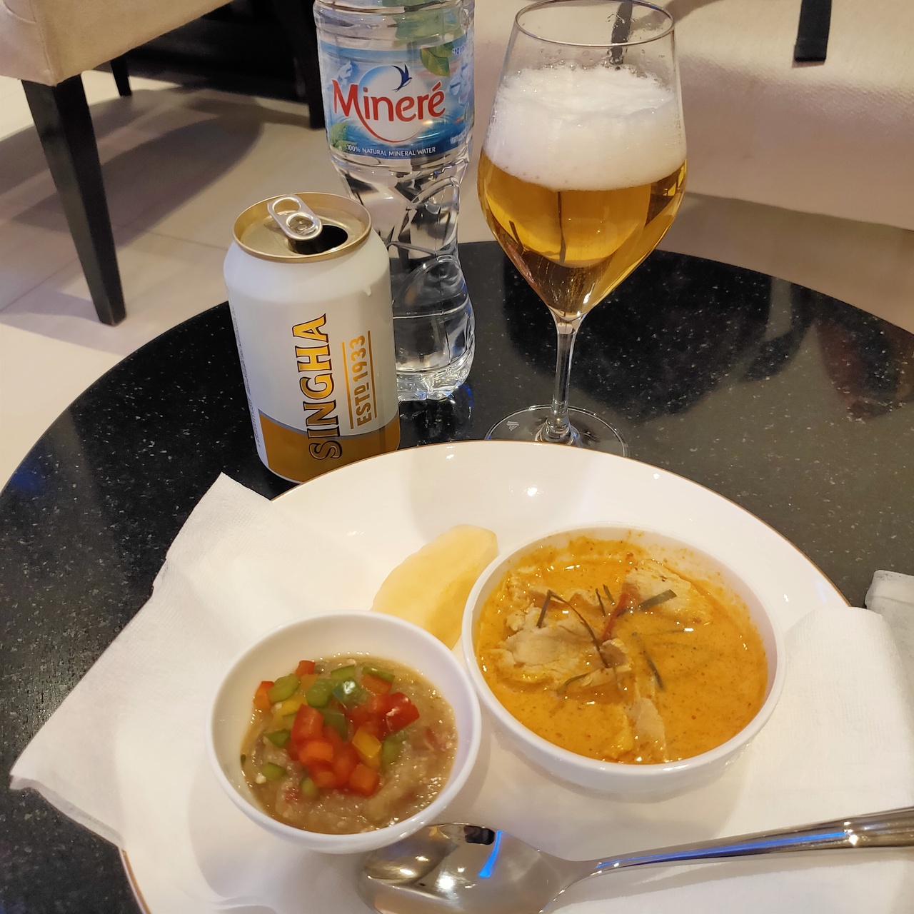 帰国前にシャワーが使えるラウンジ目当てで行きました。ラウンジ利用時間2時間半でシャワー6人待ち。間に合わなければ仕方ないと半ば諦めていましたが結論しっかり利用出来ました、良かったです☆覚えていませんがシャワーは1人15~20分くらい?ドアの外で係の方が待機しており、時間になるとノックされます。アメニティは無料配布、タオルもあります(返却)。オマーン航空のラウンジは右側がファーストやビジネスクラスの方々利用だそうですが知らずにエコノミーの私も利用してしまいました。アルコールはふんだんにあります。グリーンカレーやサテが美味しかった♪