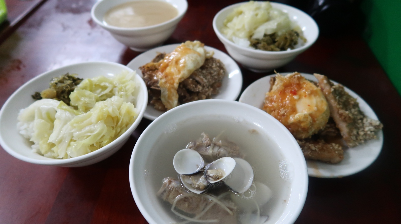 排骨飯は、豚のスペアリブ揚げをご飯に乗っけた丼です。これにポーチドエッグがどーんと乗って出てきます。基隆は駅弁でも排骨飯を売っていて、2つくらい前の駅の七堵の排骨飯弁当がナンバーワン駅弁に輝いたこともあるとかないとか、どうもこの近辺、排骨飯は有名みたいです。