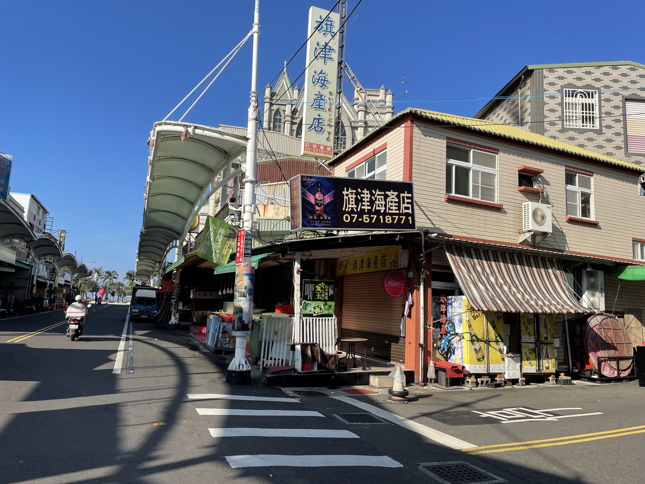 旗津フェリー乗船ターミナルから旗津海岸方面への「廟前路」沿にあります。旗津海鮮店など新鮮な海産品を販売する店舗が道の両側に軒を連ねています。魚市場と勘違いして早朝に訪問してしました。店舗はほとんど営業前で屋台がポツリと出ているのみで失敗してしまいました。10時から開店です。