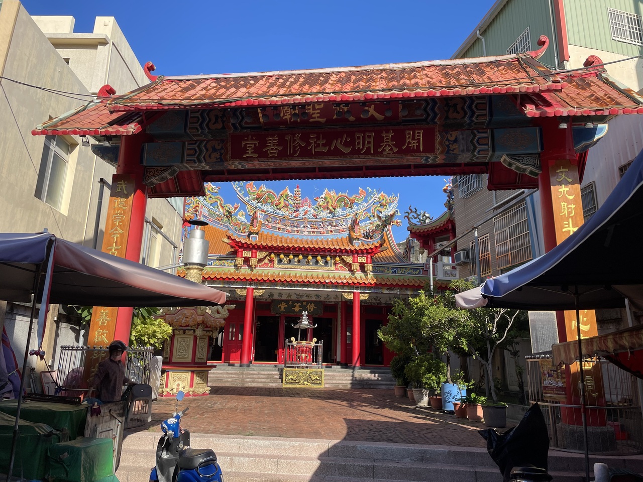 旗津フェリー乗船ターミナル前から旗津海水浴場へ続くメインストリートです。先ず左手には「旗津天后宮、名心社修善堂、海鮮街、キリスト教旗後教会など見どころの多い通りです。レンタバイクや自転車の店も多くあります。