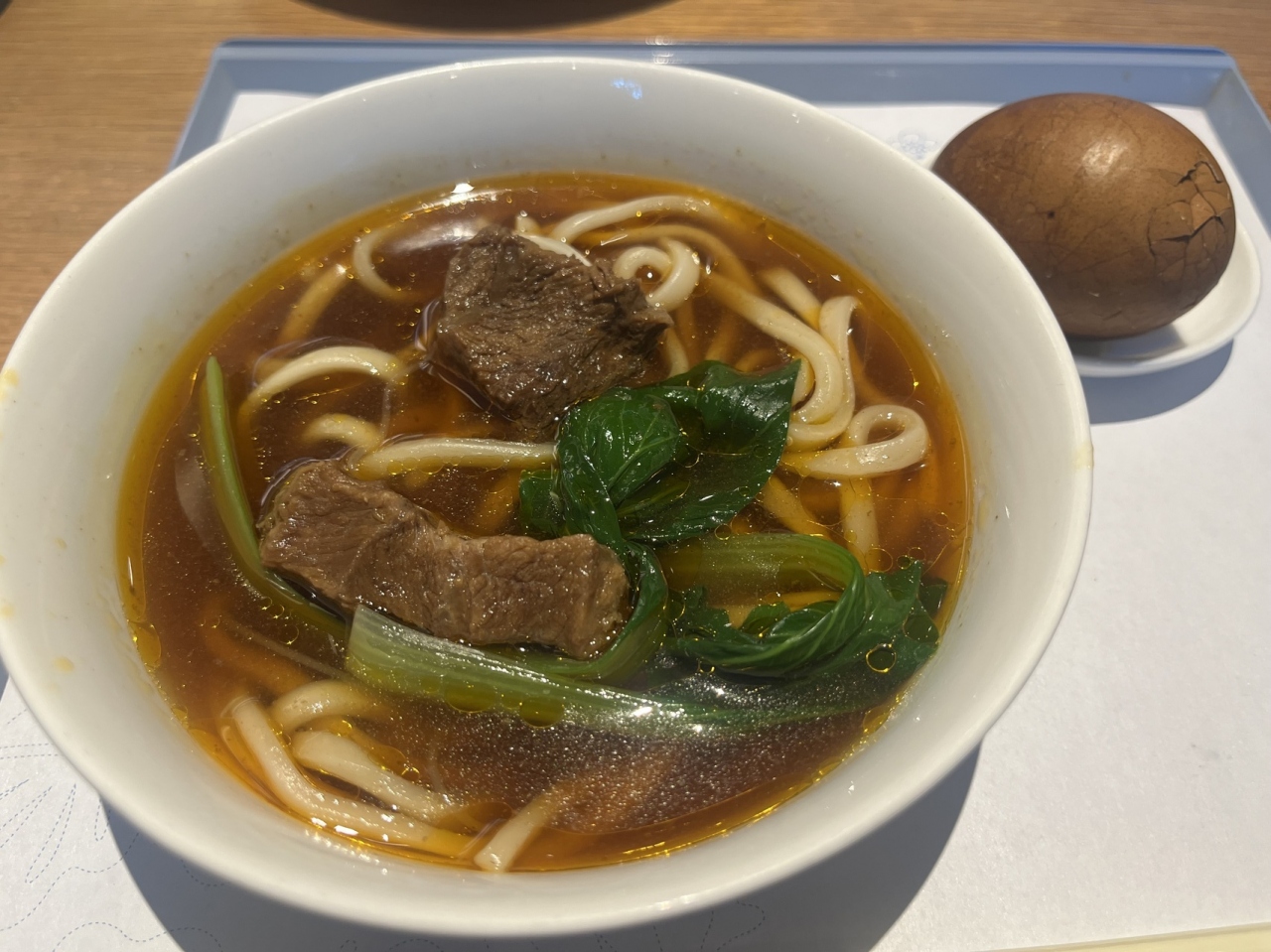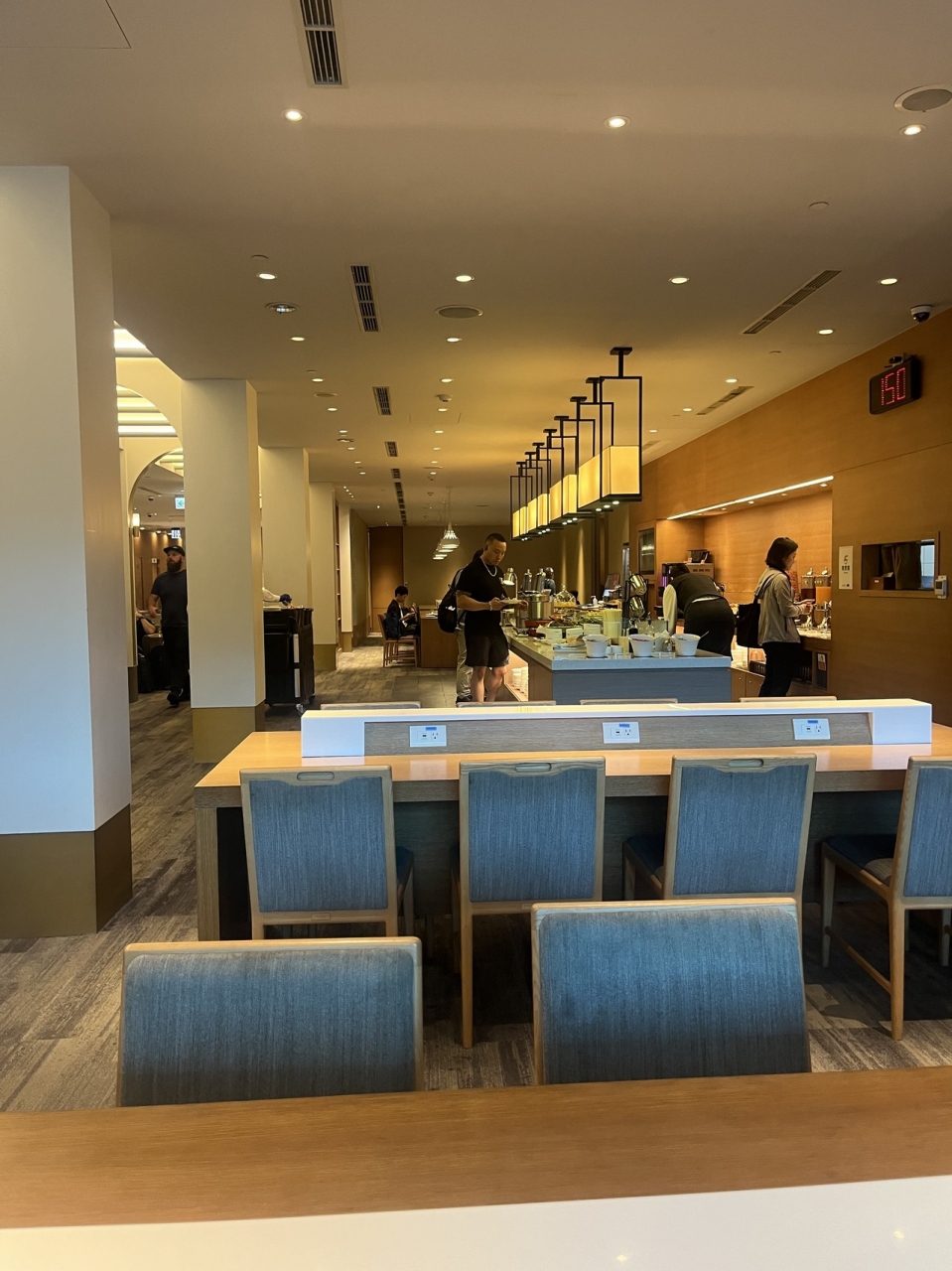 2024年現在、第二ターミナルのJALラウンジはクローズしているので、チャイナエアラウンジ(梅苑)を案内されます。過去にも何度か利用していますが、以前よりもミールの数が増えたようで、牛肉麺や茶葉卵などの台湾飯の他にもフルーツやシャーベットなどがラインナップされています。時折、中国語のアナウンスが大音量で流れるので、電話していたら、海外にいるのがバレました。