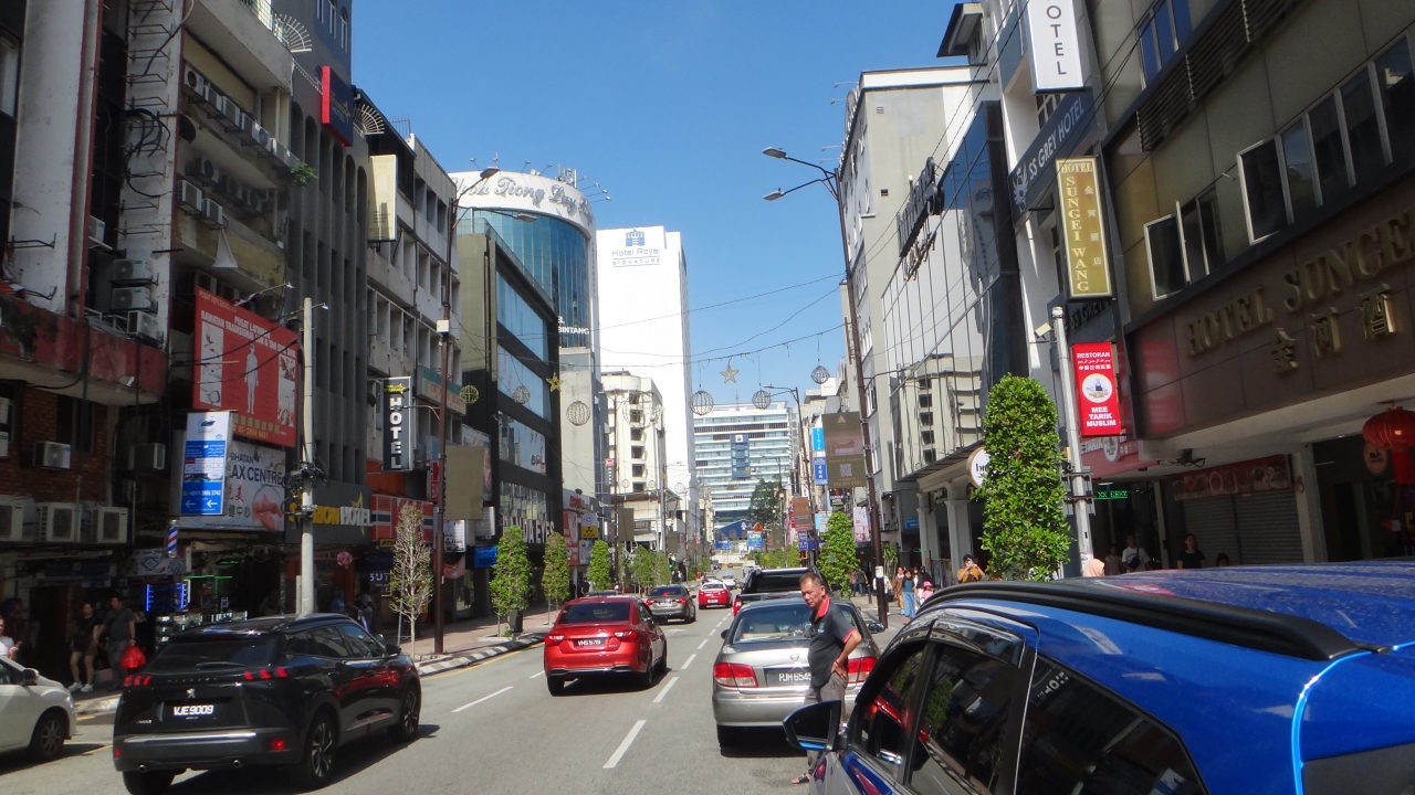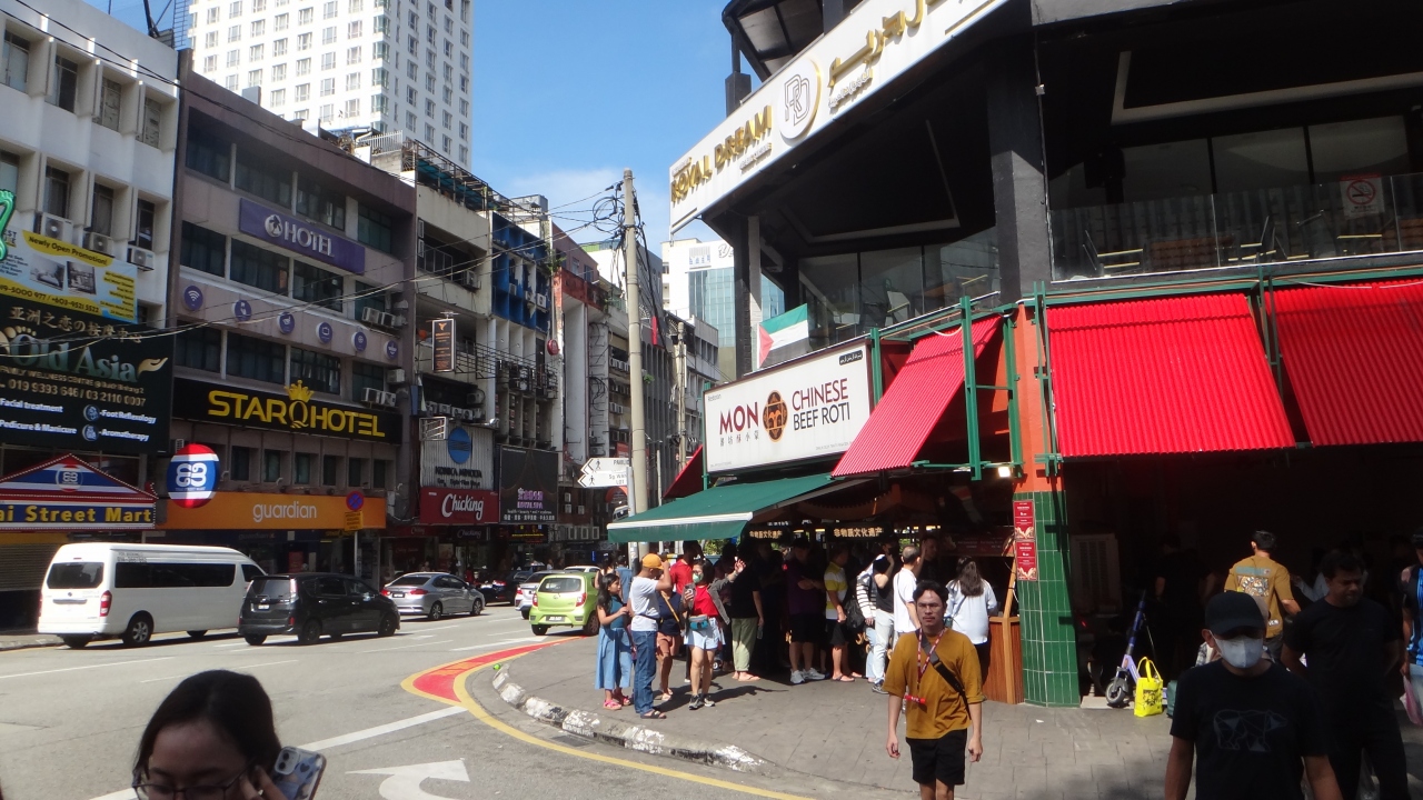 Bukit Bintang駅前の大通り。ショッピングで訪れる観光客も多くKL一番の賑わいだ。巨大なショッピングモールから道一つ隔てて夜の飲食店が集まるアロー通りも近い。付近には換金率の良い両替所も多数ある。