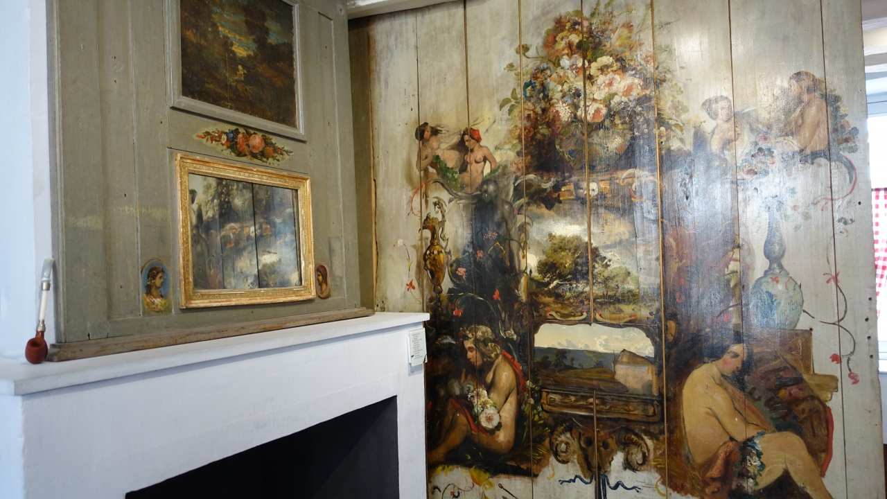 バルビゾン派の革新的な作品はなかなか世に認められず、彼らは貧しい生活を送っていた。そんな彼らを支援したのがここで旅館を営んでいたガンヌ夫妻。貧乏な若い画家たちに食事や寝所を提供していた。館内に入ったら最初にビデオを視聴し、その後に館内を見学する。日本人であると言ったら日本語の字幕も出してくれる。館内には彼らの作品の他に、室内の壁に描かれた絵が残っている。