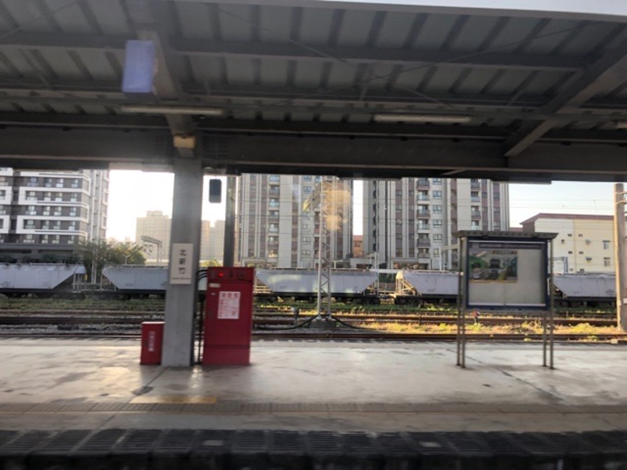 新竹の隣の駅です。ほとんどの駅では、youbikeというレンタル自転車が駅前にありますが、ここは見かけませんでした。各駅電車である区間列車がとまる駅で、倉庫みたいなのもあって、貨物列車か並んでいました。