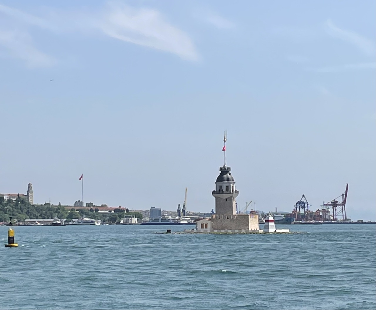 ボスポラス海峡クルーズで海峡にの入口に浮かぶ島に立つ塔でした。