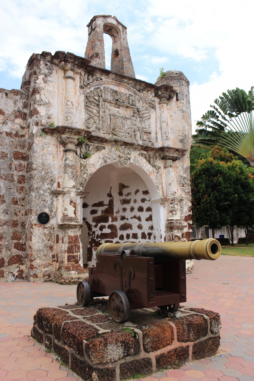 オプショナルツアーに参加してマラッカへ行きました。マラッカ観光のメインの観光スポットの一部です。セントポール教会などの流れから、こちらのサンチャゴ砦を見ました。大砲もあり、写真撮影の場所としても良いところです。オランダ広場に比べると人は少ない印象でした。