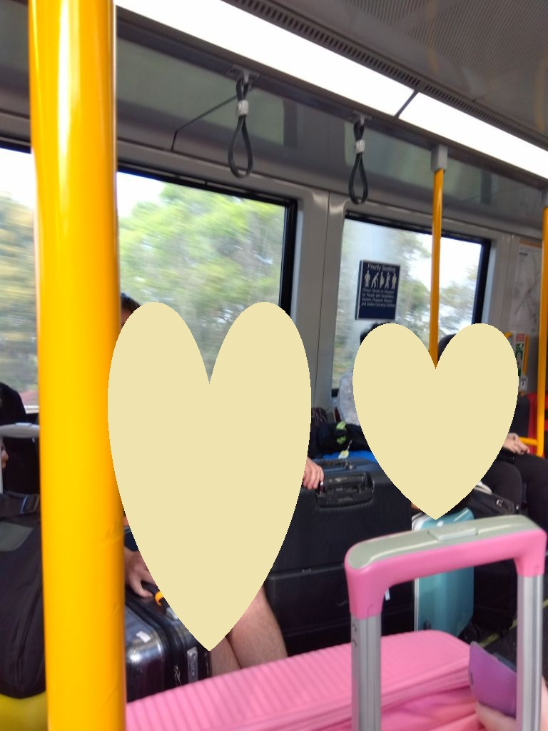 Gトラムに乗って、helensvale駅まで行き、鉄道に乗り換えてブリスベン空港に行くときに利用しました。平日の朝6時台の鉄道でしたが、空港行きのお客さんや出勤の方などで、座れないほど混んでおりました。もしかしたら、車両は長いので、先頭から最後尾まで歩いて探せば空席があったかもしれません。スーツケース置き場は特にないので、自分が座った前に置いておくしかありません。私は親切な女性の方が、お子さんと隣がいいでしょと、席を譲ってくださり、1時間越えの長旅を座って過ごすことができました。(感謝) Gトラムから鉄道への乗り換えは、階段であると5分あると余裕ですが、スーツケースがあるとエレベーターを2回使用することになるので、余裕を見るなら10分は必要かと思います。すべてに自動改札があるため、GO CARDをかざすか、ネットで買ったEチケット(このほうが断然価格が安いです)を係の方に見せると自動改札を開けてくれます。