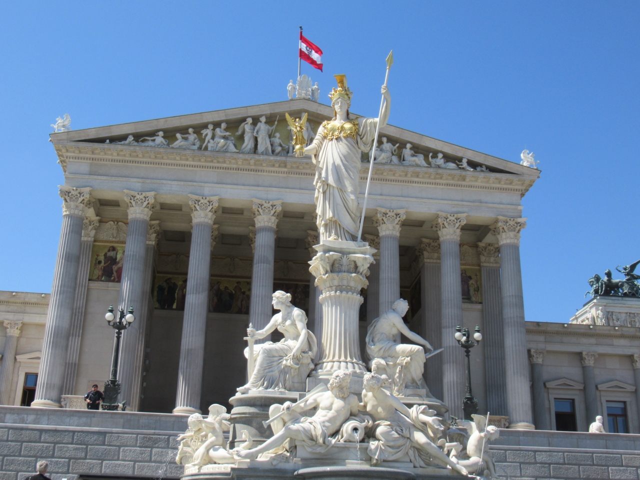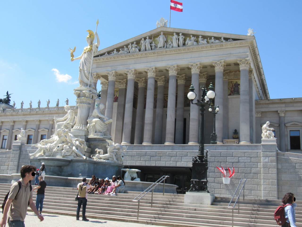 オーストリアの国会議事堂は、首都ウィーンの自然史博物館の北側、フォルクスガルテンの向かい側のリング通りにあります。