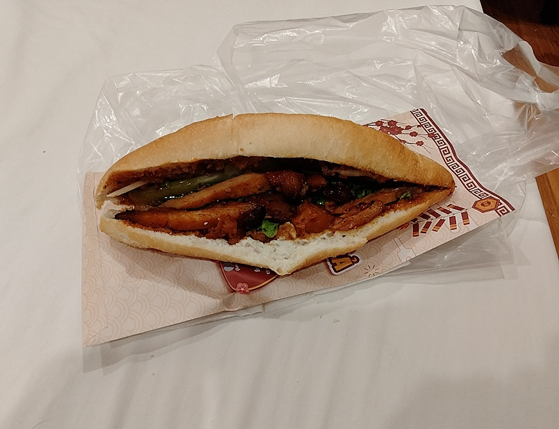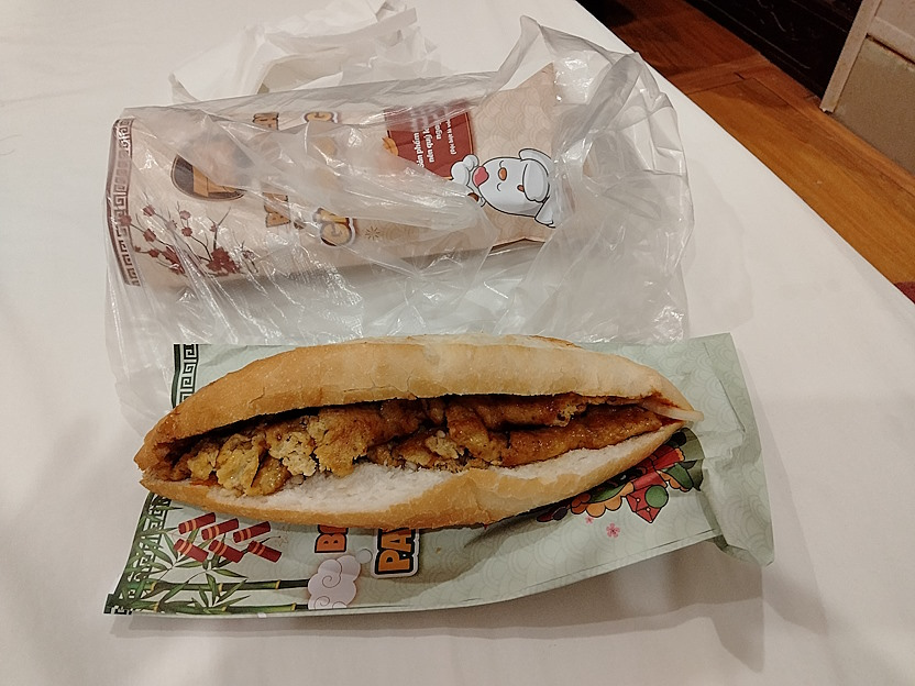 私個人としてイチオシのバインミーホイアンに行って、エッグとチキンの2種類のバインミーをテイクアウトで購入、価格は両方で52,000VNDでした。