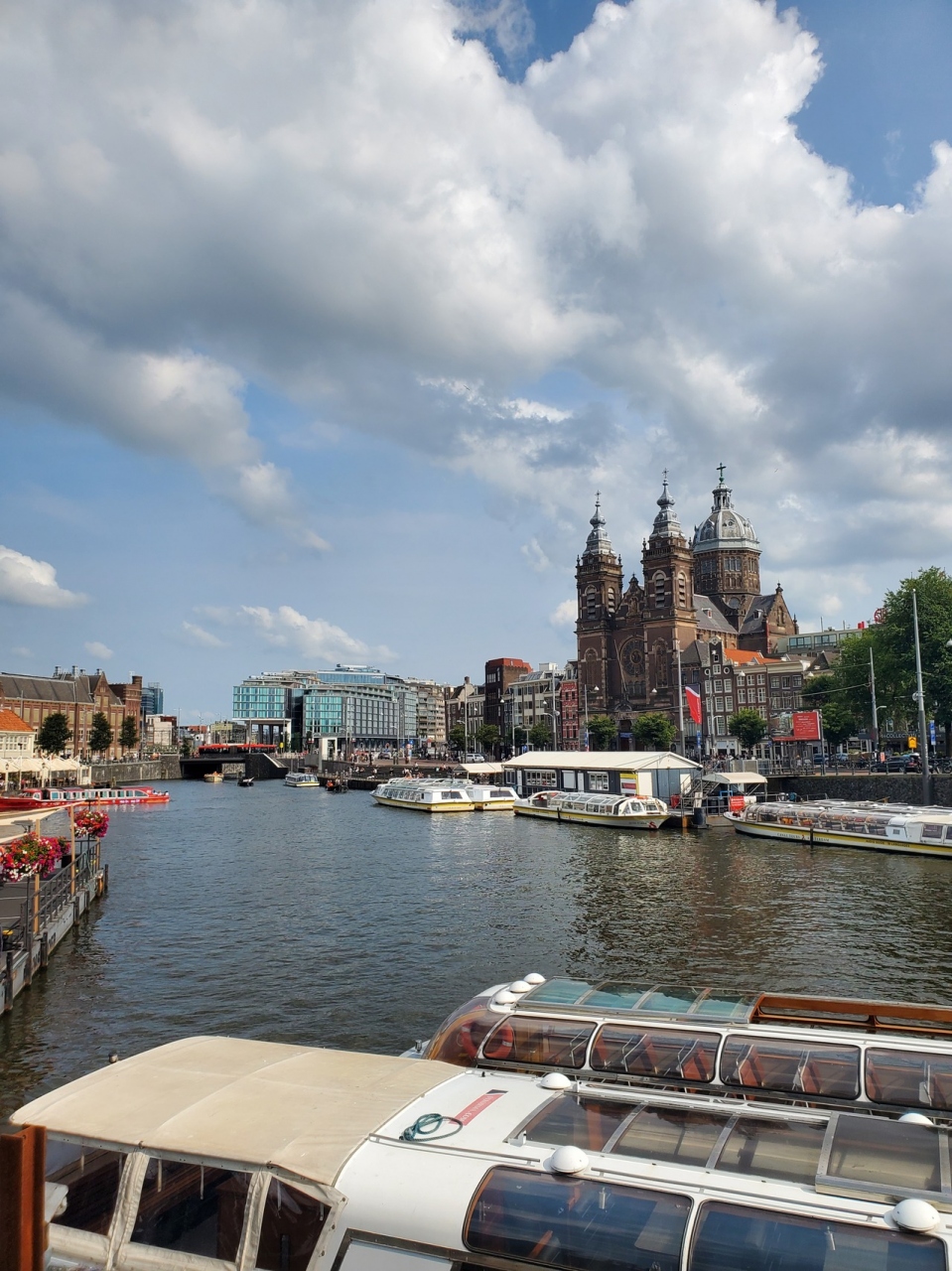 オランダ、アムステルダムのセントラル駅から外に出ると一番先にパッと目に入る教会でしょうか、アムステルダムの運河のある独特な町並みとマッチしておりアムステルダムに来たことをいい選択だったと確信することになるでしょう。